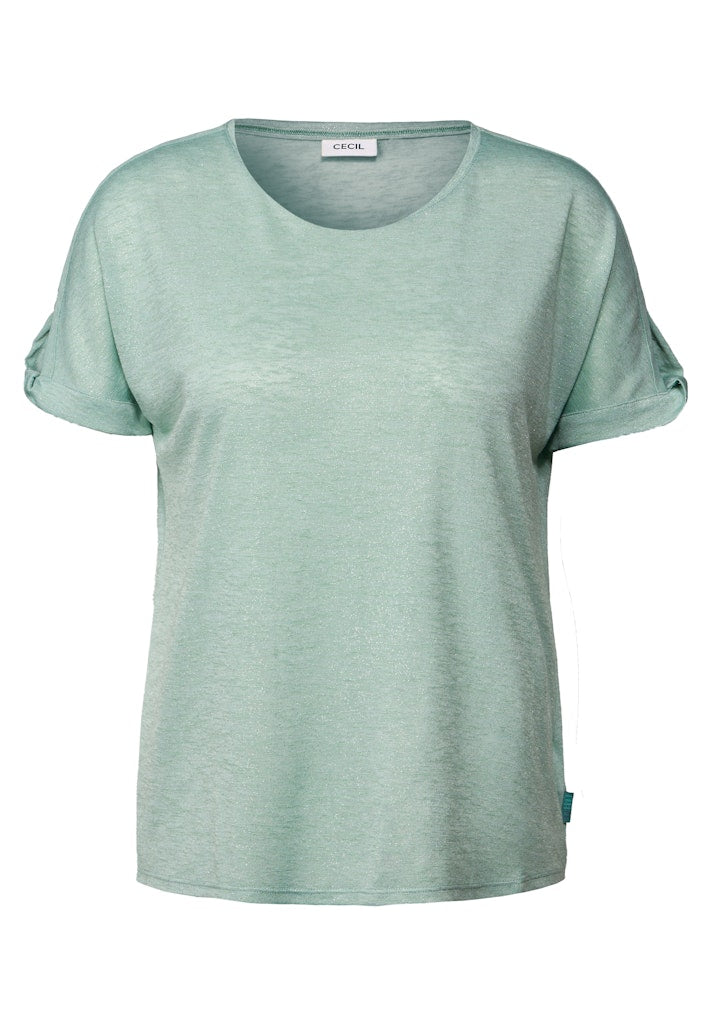 Dieses T-Shirt von CECIL für Damen begeistert mit seiner lässigen Leinen-Optik. Schimmernde Details setzen dezente Glitzerakzente und verleihen dem Shirt eine besondere Note. Mit Rundhalsausschnitt und kurzen Ärmeln ist es ein vielseitiges Lieblingsteil für entspannte Looks. T-Shirt Rundhalsausschnitt Kurzarm Mit schimmernden Details Angenehmer Tragekomfort Material: 55% Polyester, 45% Viskose