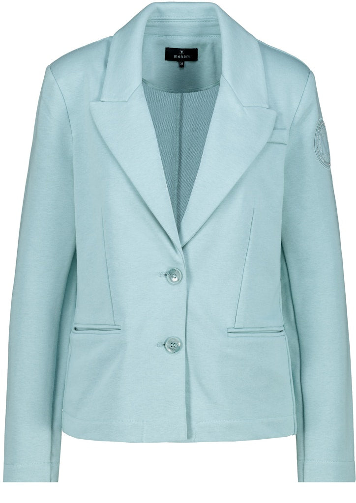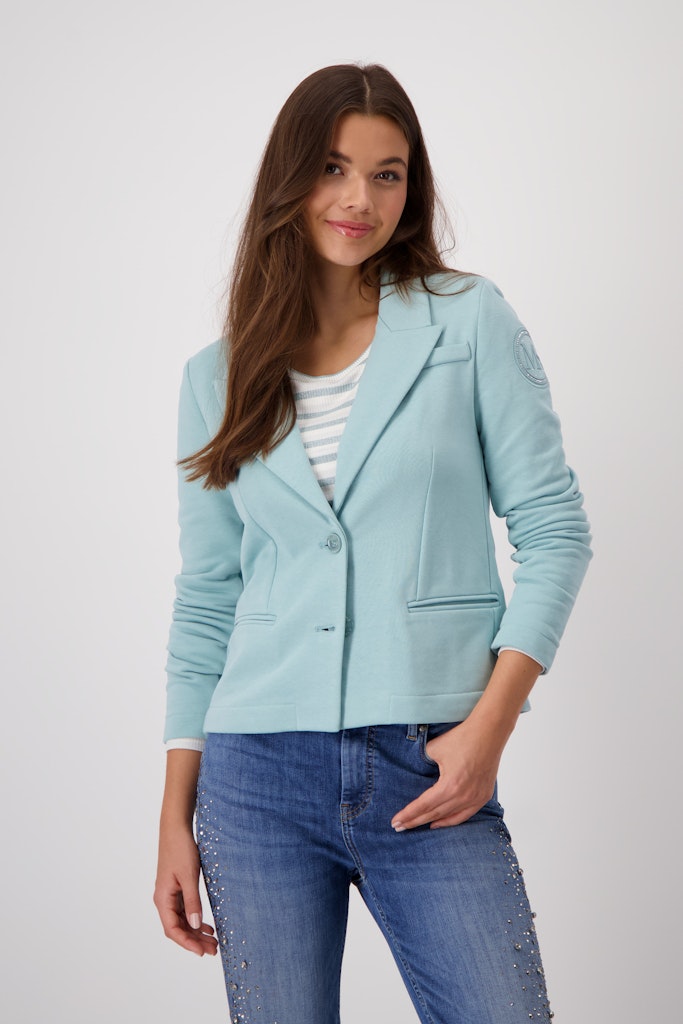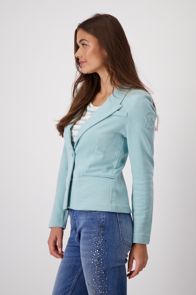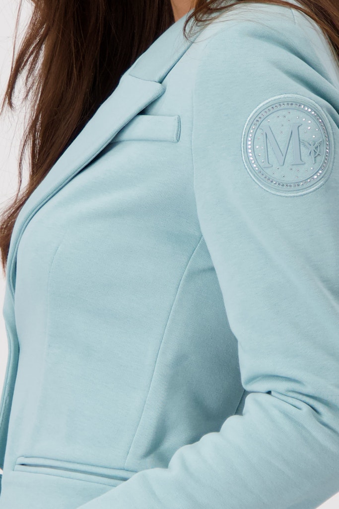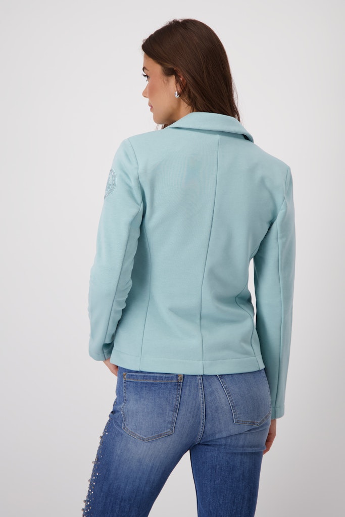 Der Sweatblazer mit Reverskragen ist aus 100% Baumwolle gefertigt und verfügt über ein schickes Patch mit funkelnden Strasssteinen.