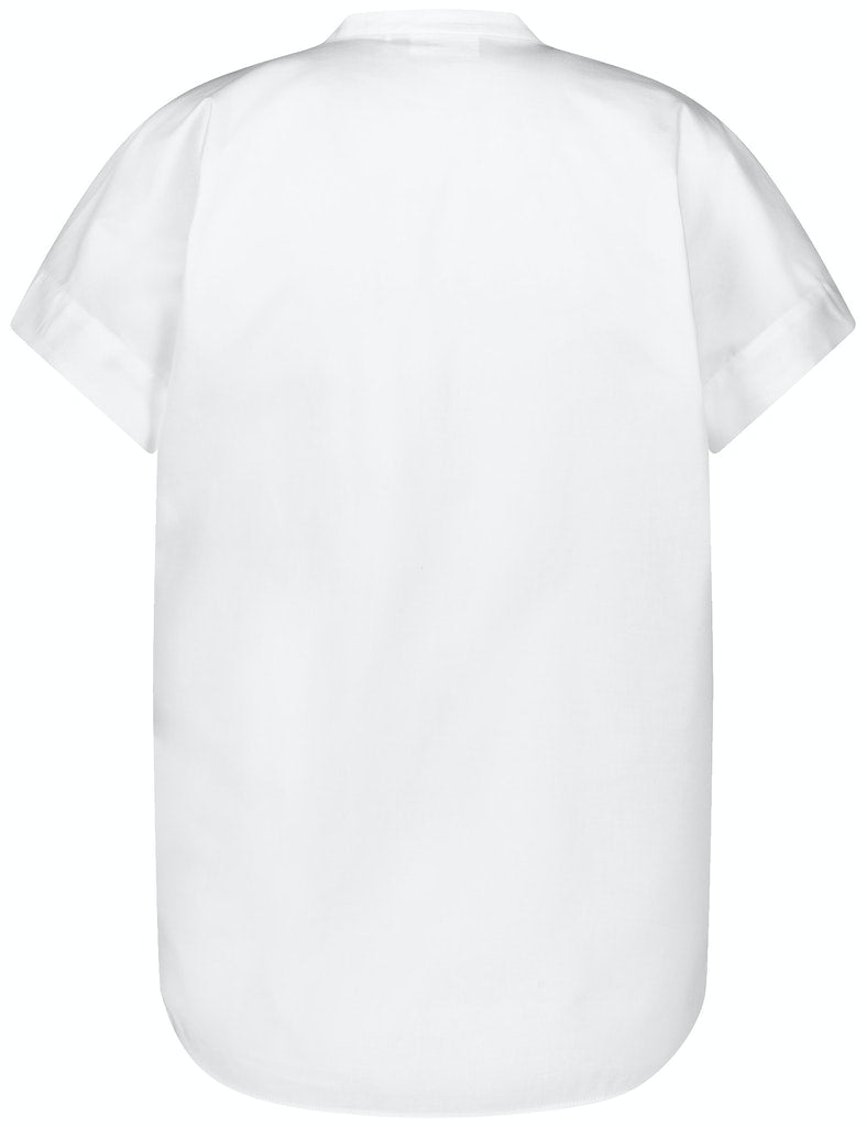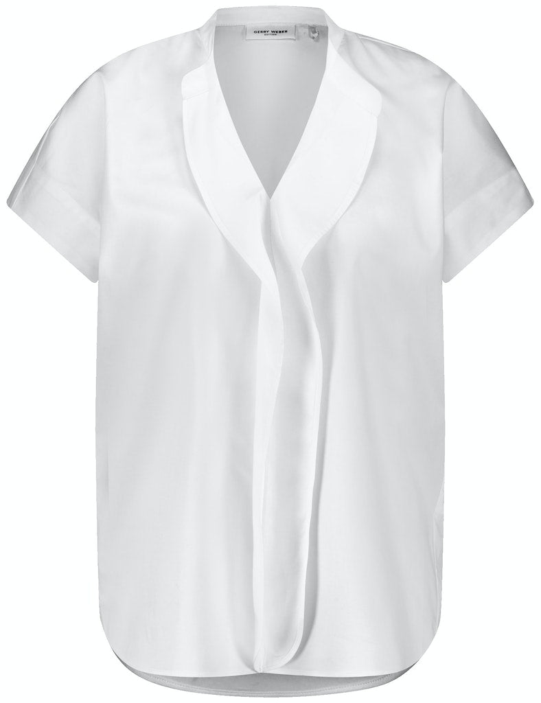 Voluminöser Volant am Frontteil. Abgerundeter Saum. Mit dieser verspielten Kurzarmbluse setzen Sie ein modisches Highlight. Die Bluse aus reiner Baumwolle ist angenehm zu tragen, mit hautfreundlichen und atmungsaktiven Eigenschaften. Überschnittene Schultern und ein abgerundeter Saum sind smarte Details. Absoluter Hingucker ist jedoch der voluminöse Volant, der sich vom Ausschnitt bis zum Saum zieht. Ob solo oder unter einem Blazer oder Cardigan, diese Bluse wird Ihr neues Lieblingsstück!