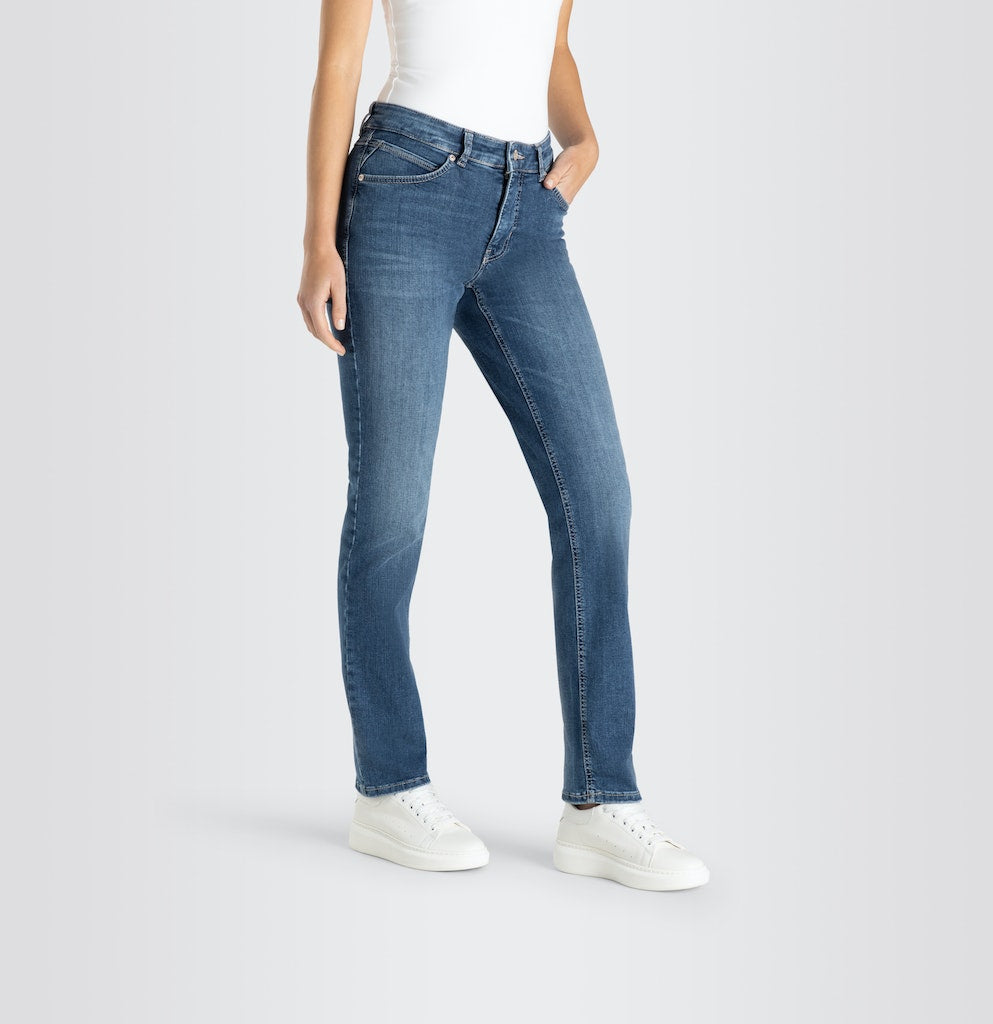Straight Fit, Straight Leg, gerades, schlankes Bein, leicht erhöhte Leibhöhe, schmale Taille, bequem an Gesäß und Oberschenkel, Five Pocket, sportives Naht-Detail am Tascheneingriff, modernes Naht-Detail an den Gesäßtaschen, Perfect Fit Forever Denim, sehr hochwertige, komfortable Stretch Denim-Qualität, leicht im Gewicht, authentische Optik, hervorragende Passform, über Better Cotton gesourcte Baumwolle, Das Model ist 1,75m groß und trägt die MAC Hosengröße 36, Fußweite bei Größe 36: 35cm -