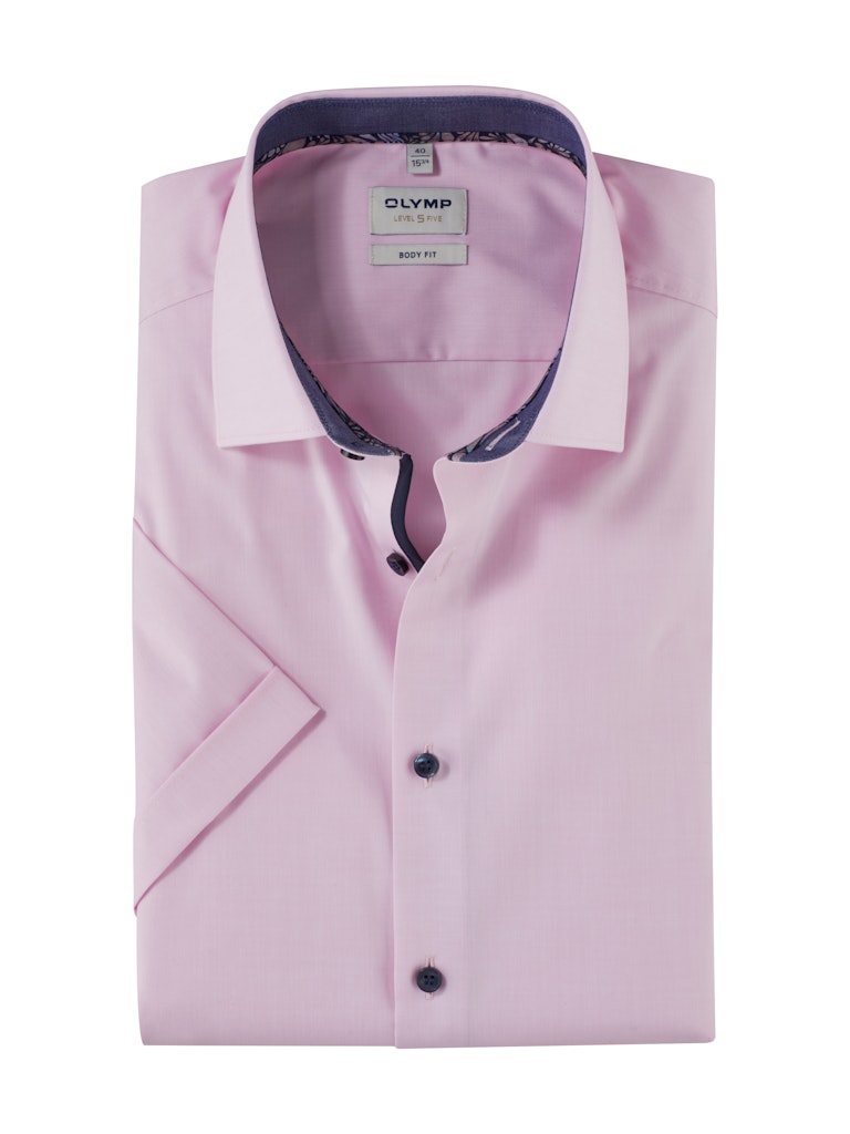 Überzeugt auch in der Kurzarmvariante. Dieses unifarbene OLYMP Level Five in apartem Hellrosé überzeugt durch seine frühlingshaft feine Qualität mit hoher Fadendichte und alltagskonformer Pflegeleichtigkeit. Modisch akzentuiert durch dezente Farbkontraste, geschnitten im taillierten Body Fit, vollendet durch einen stilvollen Modern Kent.