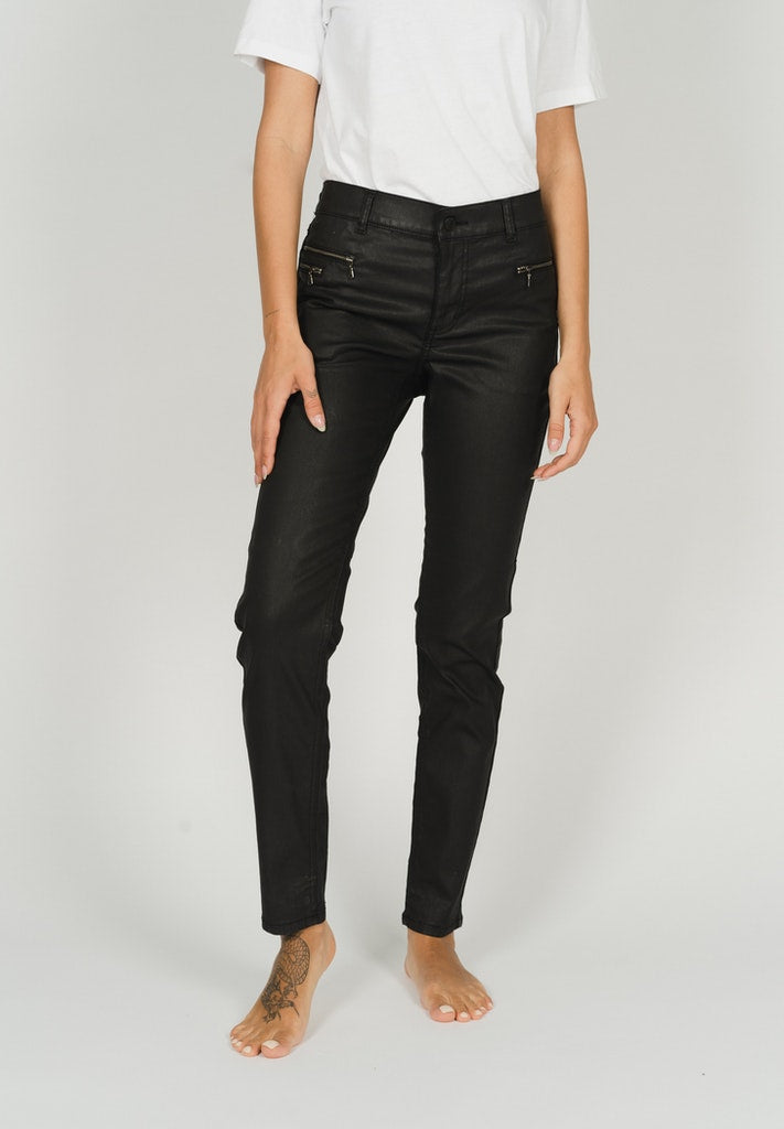 Entdecke den angesagten Trend der Coated-Optik mit der Malu Zip Hose. Der modsiche Slim-Schnitt und das einfarbige Design mit Coating verleihen ihr das gewisse Etwas. Mit drei Taschen mit Reißverschluss und ihrem schmalen Schnitt ist sie nicht nur modern, sondern auch ein vielseitiges Kombiwunder.
