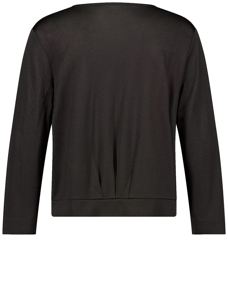 Paspelierte Saumkanten. Faltendetail am Rückenteil. Dieser offene Cardigan kombiniert schlichte Eleganz mit raffinierter Leichtigkeit. Die feine Qualität fühlt sich angenehm an, während das raffinierte Faltendetail am Rücken dem Design eine besondere Tiefe verleiht. Ein stilvoller Begleiter für verschiedene Looks!