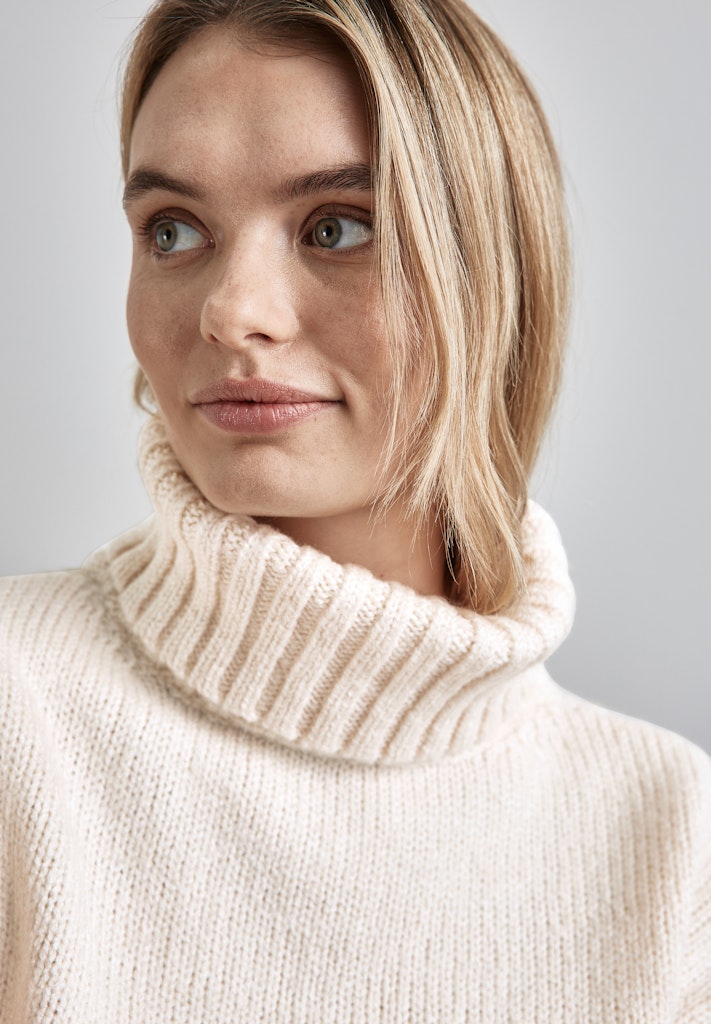 Der gestreifte Strickpullover von Street One für Damen kombiniert einen Turtleneck mit einem weichen Materialmix. Die langen Ärmel mit Bündchen sorgen für Wärme und Gemütlichkeit, während das Streifenmuster modischen Charme verleiht. So ist der modische Colorblock Pullover dein idealer Begleiter für kalte Tage. Colorblock Pullover Turtleneck Langarm mit Bündchen Weicher Materialmix Wam und gemütlich Material: 74% Polyacryl, 19% Polyester, 7% Baumwolle