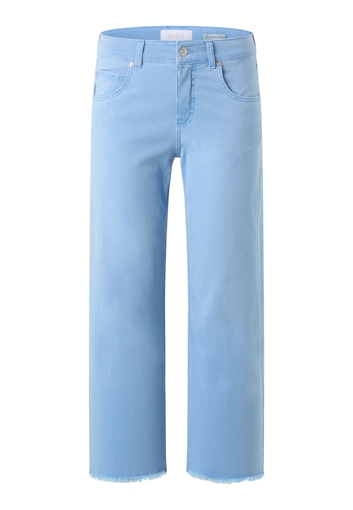 Feine Fransen am Saum machen aus dieser Jeans-Culotte von ANGELS etwas ganz Besonderes. Die wadenlangen Beine mit weitem Schnitt haben eine lässige Passform, die nicht nur bequem ist, sondern auch fabelhaft aussieht. Mit ihrem eleganten Design und dem unifarbenen Stoff wird die Jeans zum perfekten Kombi-Partner für ausgefallene Muster und kräftige Farben. Auch die hochwertige Baumwollmischung besticht durch ihren angenehmen Tragekomfort. Der Stretch-Anteil im Material macht sie zusätzlich bequem und bietet Dir optimale Bewegungsfreiheit. Kombiniere die Jeans sportiv zu Shirt und Sneakern für ein frühlingshaftes Outfit.