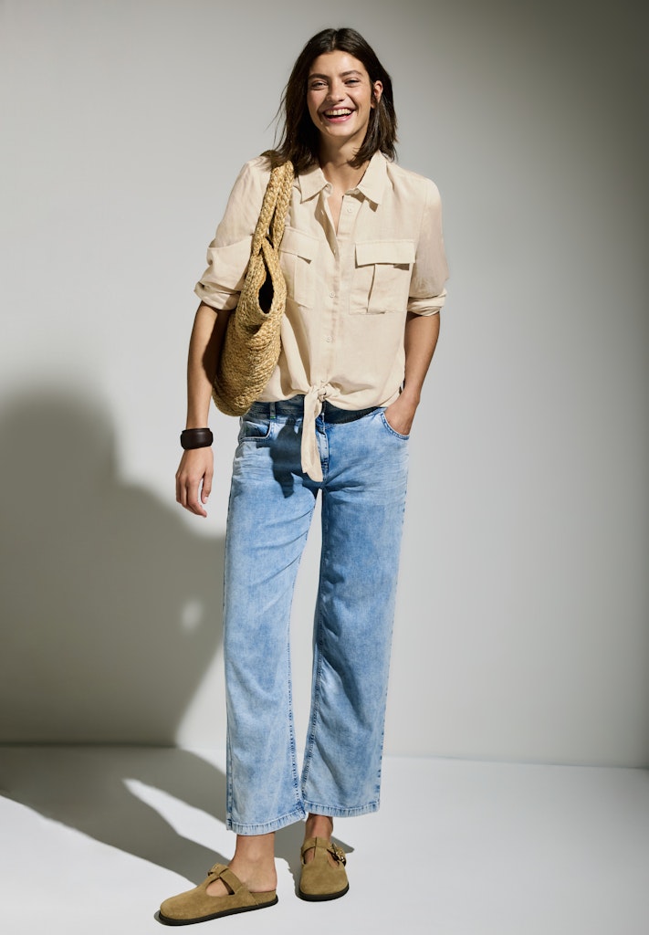 Diese leichte Bluse von CECIL für Damen überzeugt mit Brusttaschen und einem angesagten Knoten-Detail am Saum. Der Hemdkragen und die langen Ärmel mit Turn-Up unterstreichen den entspannten Look. Der angenehme Leinenmix sorgt für hohen Tragekomfort. Leichte Bluse mit Brusttaschen Hemdkragen Langarm mit Turn-Up Knoten am Saum Angenehmer Leinenmix Material: 55% Leinen, 45% Viskose