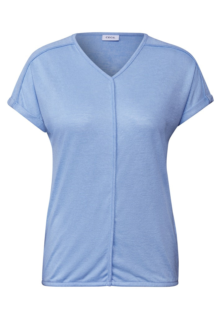 Dieses Shirt von CECIL für Damen punktet mit einem femininen V-Ausschnitt und dekorativen Nähten. Die weiche Jersey-Qualität und der elastische Saum sorgen für eine bequeme Passform und ein angenehmes Tragegefühl für jeden Tag. So ist das T-Shirt ein unkomplizierter Allrounder für viele Gelegenheiten. Shirt V-Ausschnitt Kurzarm Elastischer Saum Weiche Jersey-Qualität Material: 55% Polyester, 45% Viskose