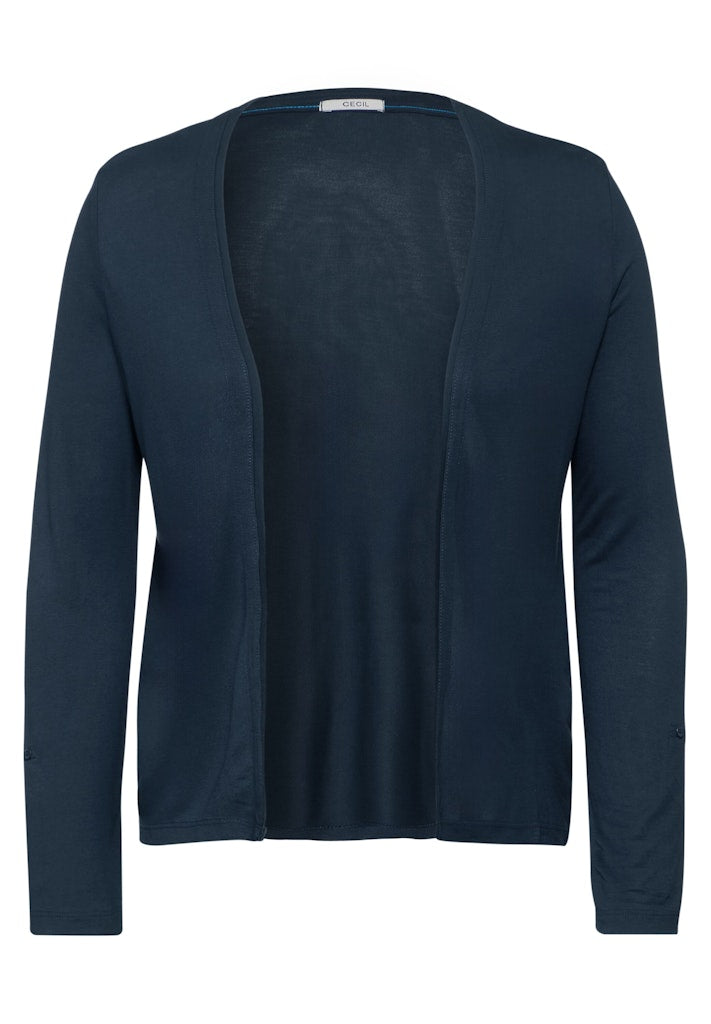 Die Strickjacke von CECIL für Damen präsentiert sich als offener Cardigan mit einem leichten, transparenten Design, das vielseitig kombinierbar ist. Die Turn-Up 3/4 Ärmel verleihen der Jacke einen lässigen Look und machen sie ideal für wärmere Tage. Hergestellt aus weicher Viskose-Qualität bietet sie angenehmen Tragekomfort und ist ein vielseitiges Kleidungsstück für verschiedene Anlässe. Offener Cardigan Leicht transparent Turn-Up 3/4 Arm Softe Viskose-Qualität Material: 100% Viskose