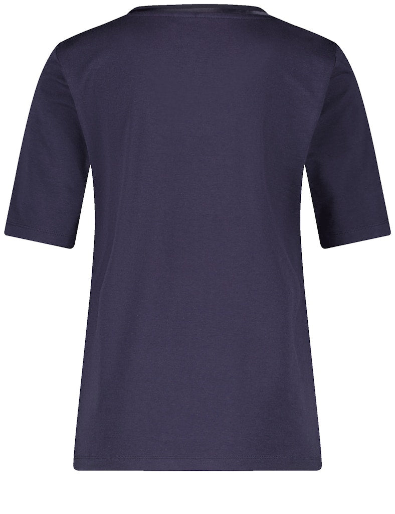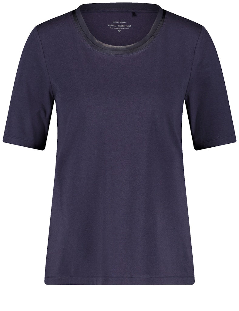 Ausschnittblende aus zartem Chiffon. Dieses körpernahe Halbarmshirt aus weichem Jersey vereint Komfort und Eleganz. Die zarte Chiffonblende verleiht dem klassischen Design eine feminine und raffinierte Note. Vielseitig kombinierbar, passt es perfekt zu Jeans, Röcken oder Business-Outfits. Ein stilvolles Essential für jeden Anlass!