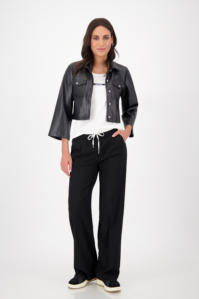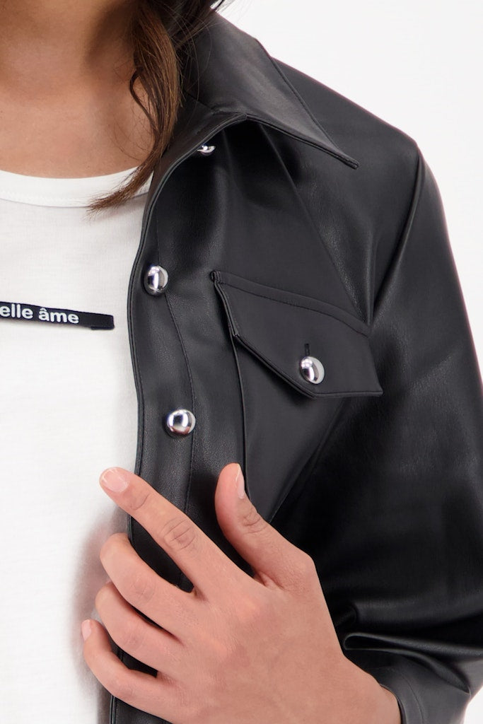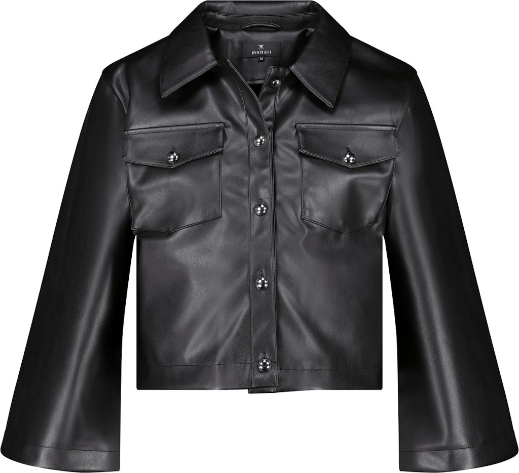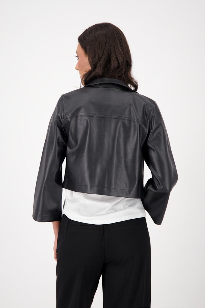 Stylische Jacke in Lederoptik mit verkürztem Schnitt, Hemdkragen, ⅞-Ärmeln und leicht ausgestellten Ärmeln.