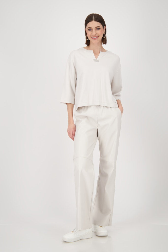 Stylisches Sweatshirt aus fließender Viskose mit elastischem Material und funkelnden Strasssteinen. Die ¾-Ärmel verleihen dem Design einen modernen, eleganten Touch.