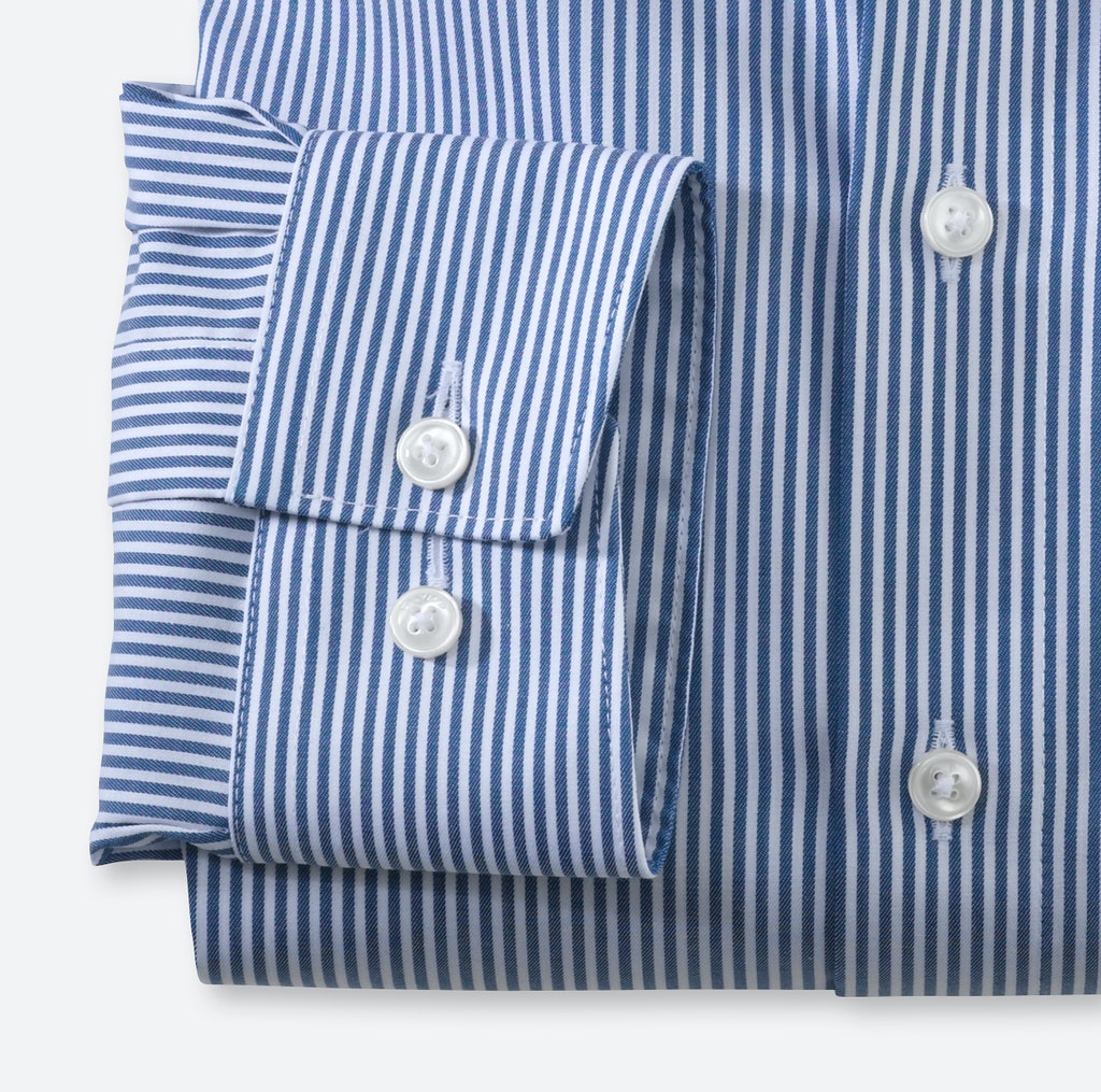 Dank modischer Designs und ästhetisch herausgearbeiteter Detaillösungen ist dieses Businesshemd ein gern gesehener Geschäftspartner. Erstklassige Rohstoffe, Zündholzstreifen Design in hellblau und eine langjährige Verarbeitungsexpertise machen das OLYMP Luxor comfort fit Hemd zu einem wahren Leistungsträger. Der Global-Kent-Kragen und weitenverstellbare Kombimanschetten runden das Gesamtbild ab. Ganz besonders mit den bügel- und knitterfreien sowie atmungsaktiven und hautsympathischen Hemdenstoffen.