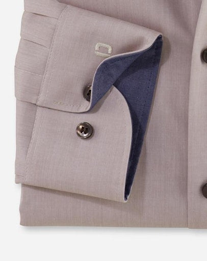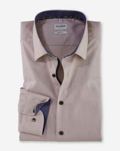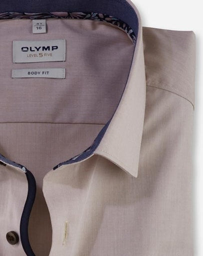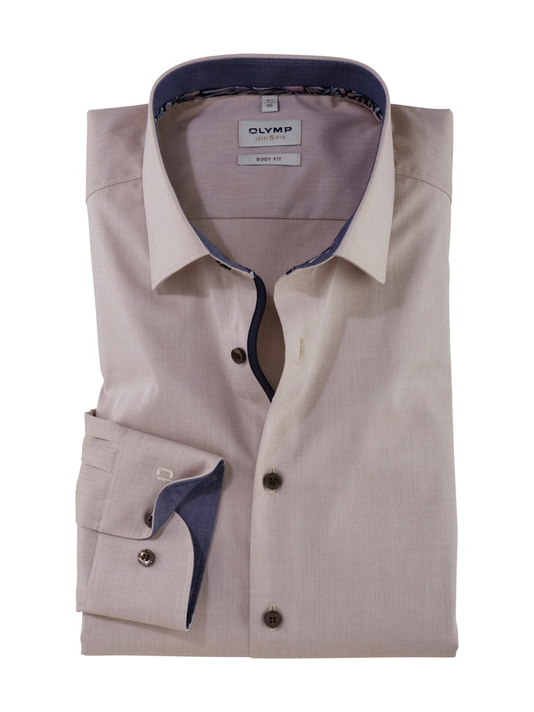 Moderner Business-Klassiker in stilvollem Natur. Das unifarbene OLYMP Level Five überzeugt durch seine frühlingshafte Qualität mit hoher Fadendichte und bügelfreundlicher Pflegeleichtigkeit. Als modische Eyecatcher wirken dezente Farbkontraste. Der Body Fit ist ideal für sportlich Schlanke und wird durch einen Modern Kent komplettiert.