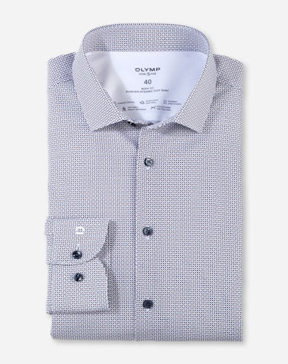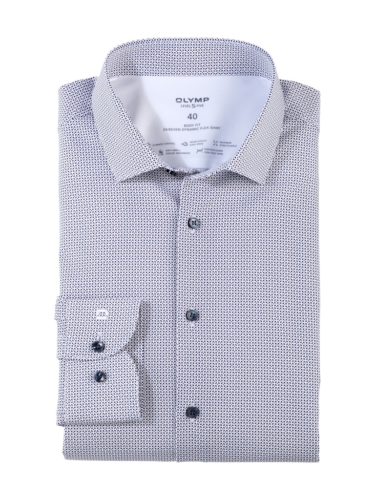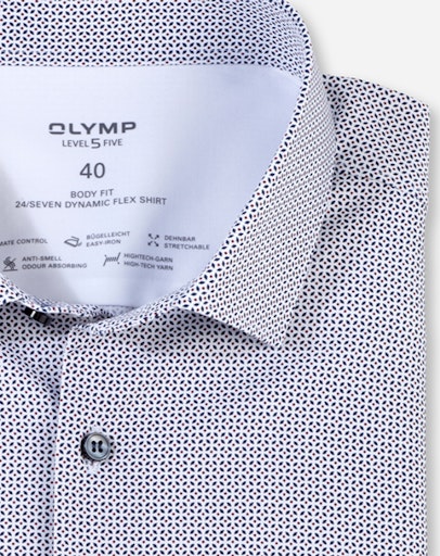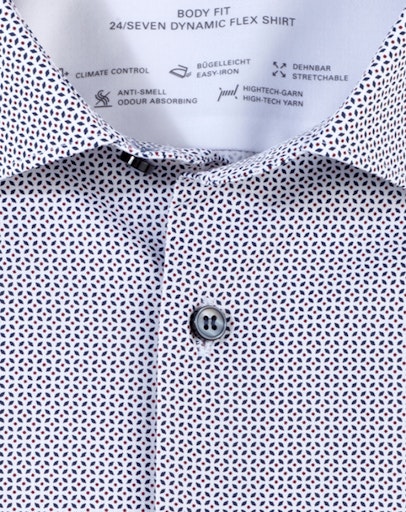 Dieses OLYMP Level Five überzeugt mit markantem Minimal-Dessin in innovativer OLYMP 24/7 Dynamic Flex Shirt Qualität. Das leichte Dobby-Gewebe ist hoch elastisch, atmungsaktiv und temperaturregulierend und damit eine ideale Wahl für den dynamischen Businessalltag. In maskulin taillierter Passform mit Modern-Kent-Kragen. Hier in Dunkelrot.