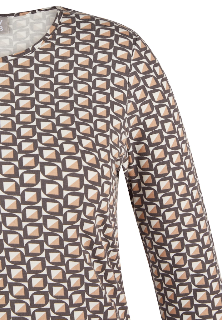 Dieses Shirt bringt durch das geometrische Muster Abwechslung in den Alltag. Der Rundhalsausschnitt und die 3/4-langen Ärmel sorgen für eine zeitlose Silhouette. Dank des elastischen Materials trägt sich das Modell angenehm und bleibt formstabil _ ideal zu schlichten Hosen, Jeans oder Röcken. Bequeme 3/4-Ärmel. Klassischer Rundhalsausschnitt. Elastisches Material für optimalen Sitz. Pflegeleicht und formstabil. Vielseitige Kombinationsmöglichkeiten.