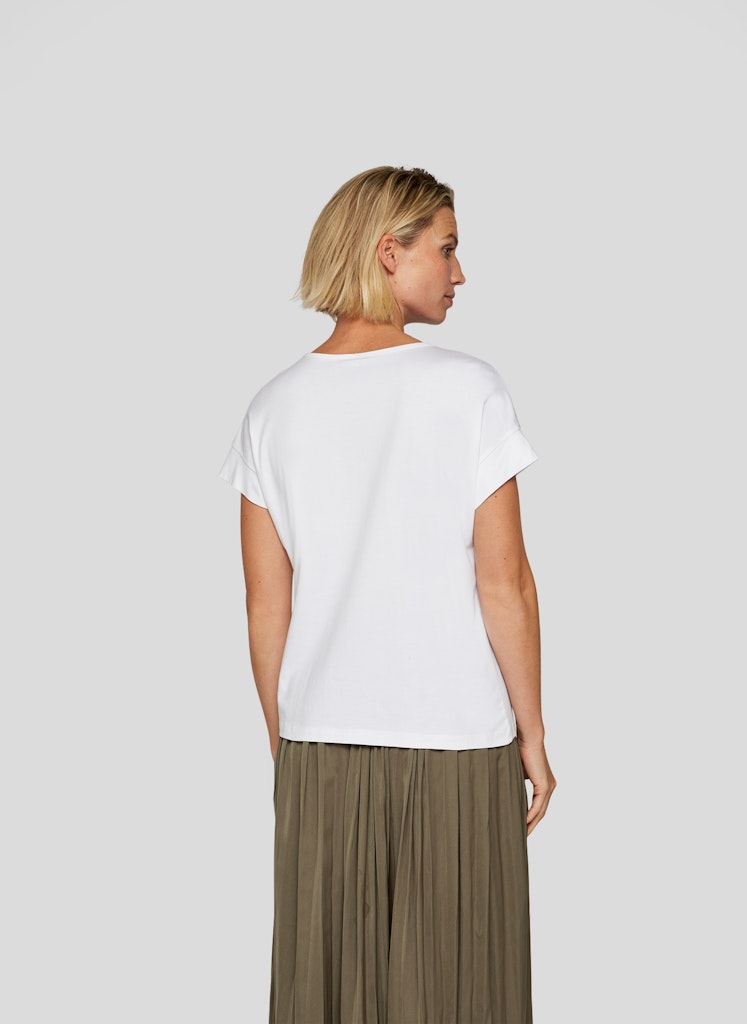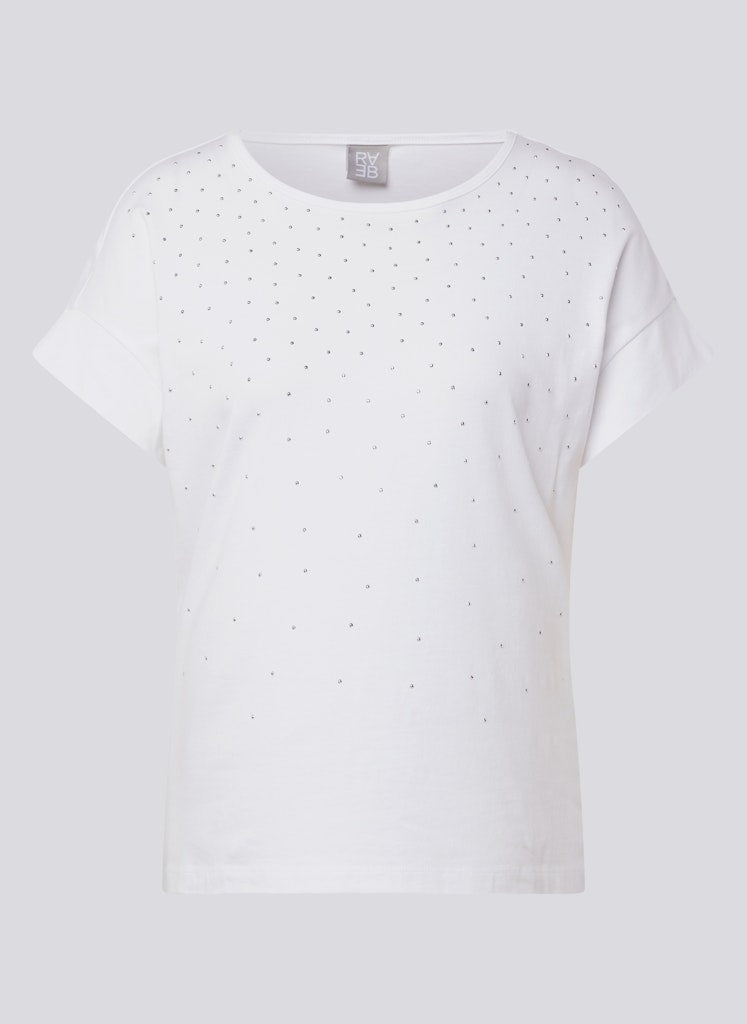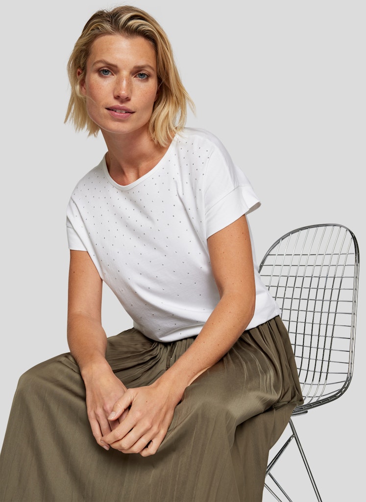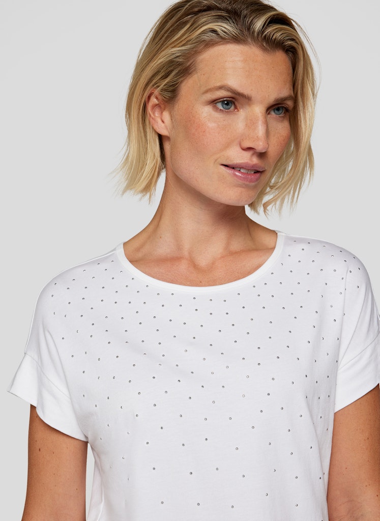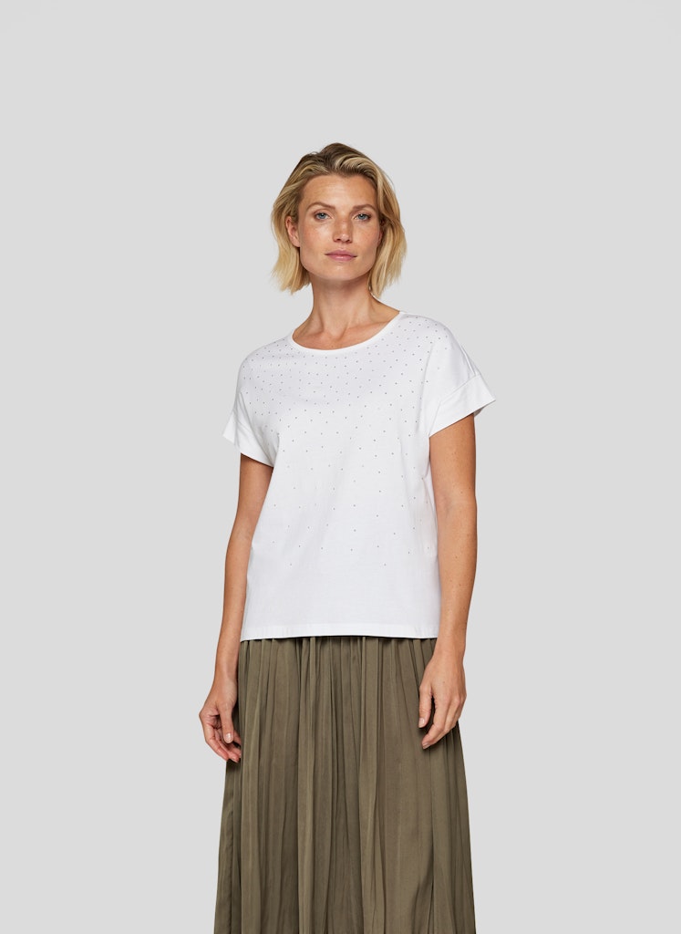 Der weiche, angenehme Stoff sorgt für ein tolles Tragegefühl, während die feinen Glitzersteinchen auf der Vorderseite für einen dezenten Schimmer sorgen. Der klassische Rundhalsausschnitt und die kurzen Ärmel machen es zum perfekten Begleiter für vielseitige Looks _ ob casual oder schick. Glitzernde Details für einen eleganten Touch. Klassischer Rundhals-Ausschnitt für eine zeitlose Optik. Vielseitig kombinierbar _ passt zu Jeans, Röcken oder Blazern. Perfekt für den Alltag oder besondere Anlässe.