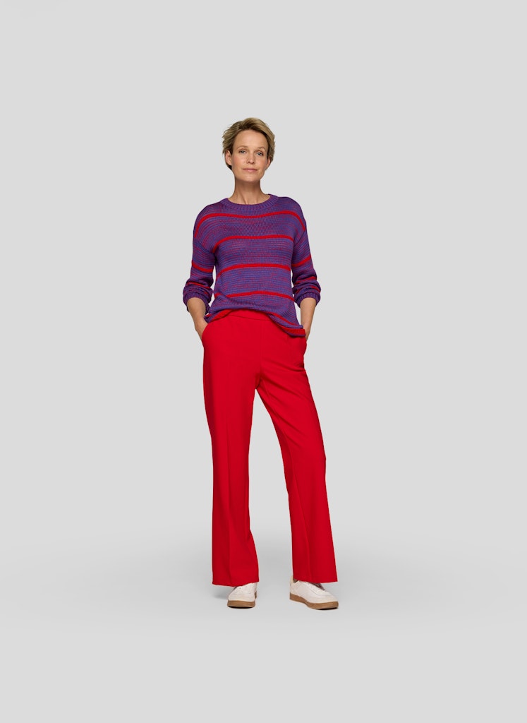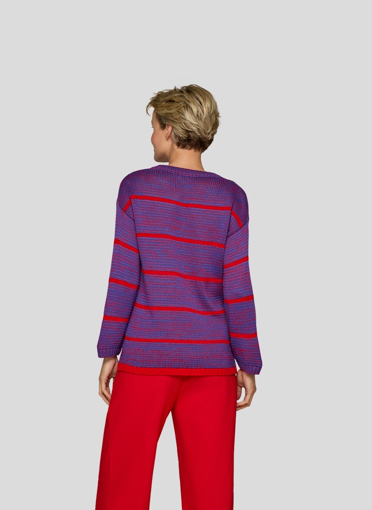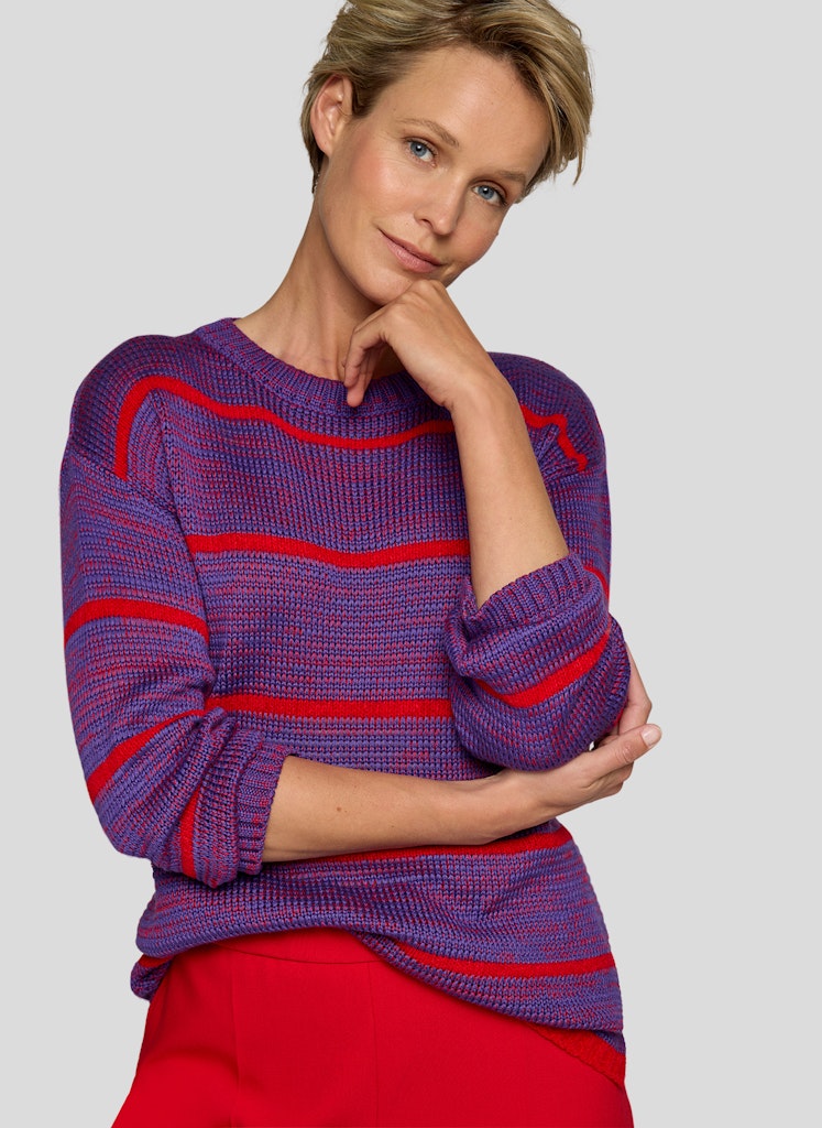 Dieser Pullover überzeugt mit seinem strukturierten Maschenbild und dem modernen Streifenmuster. Die lässige Passform und der Rundhalsausschnitt machen ihn zum idealen Begleiter für den Alltag.Weicher Strukturstrick.Rundhalsausschnitt.Gerader Schnitt.Modisches Streifendesign.Angenehm zu tragen.