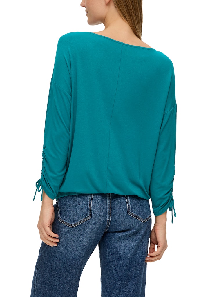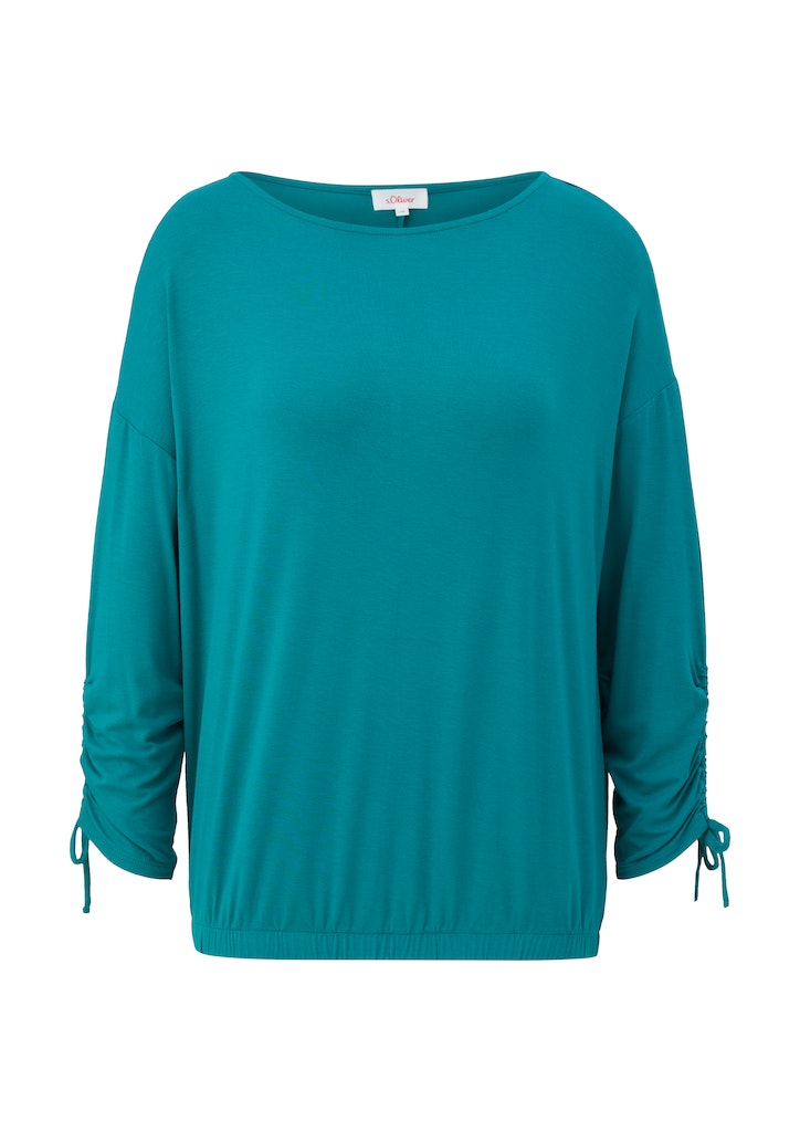 Entdecke das perfekte Piece für lässige Looks – das Langarmshirt mit ansprechender Ärmelraffung. Hergestellt aus 95% Viskose und 5% Elasthan bietet dieses bequeme Shirt weiblichen Tragekomfort. Der Lockere Schnitt und der 3/4-Ärmel machen es zu einem vielseitigen Begleiter für jede Gelegenheit. Der U-Boot-Ausschnitt verleiht ihm eine moderne Note, während der Tunnelzug am Saum dem Outfit eine individuelle Note verleiht. Styltipp: Kombiniere es mit Jeans und Sneakern für einen legeren Alltagslook. Erweitere deine Everyday-Garderobe mit diesem elastischen T-Shirt, immer passend für Casual-Chic. Worauf wartest du?