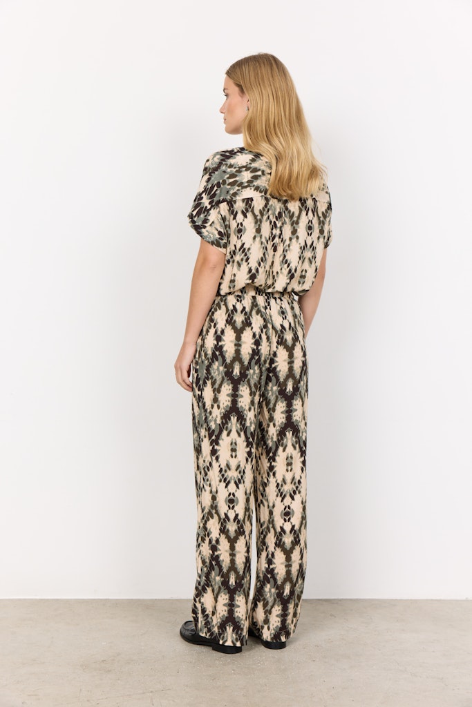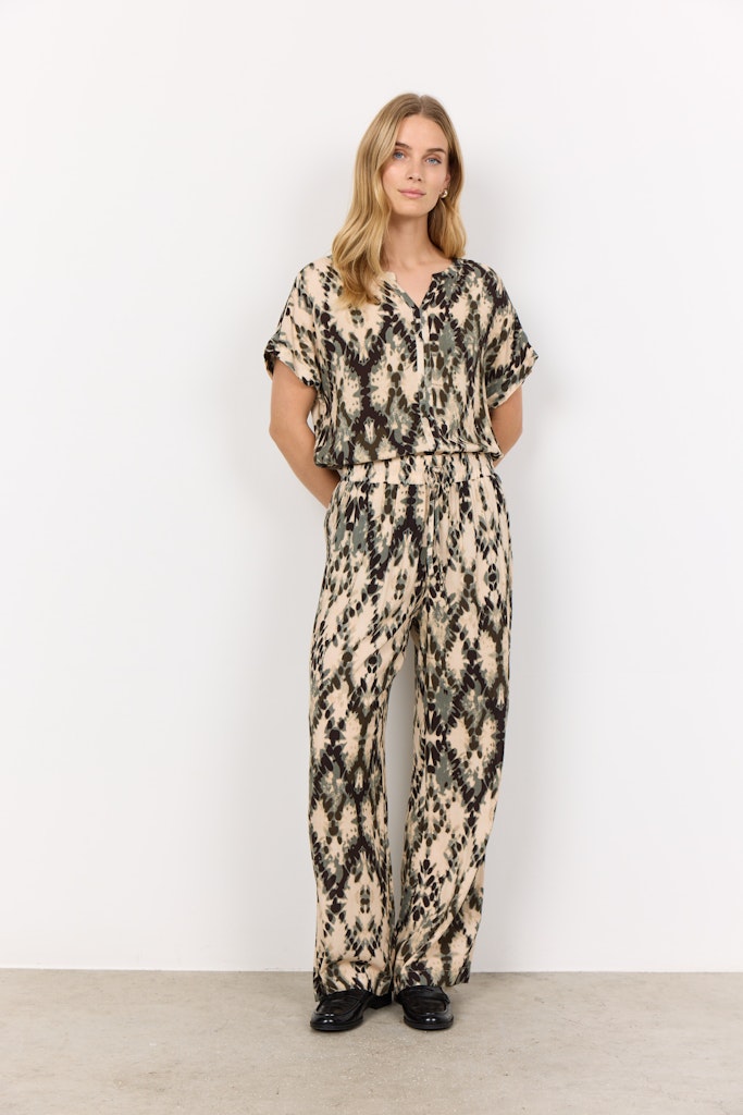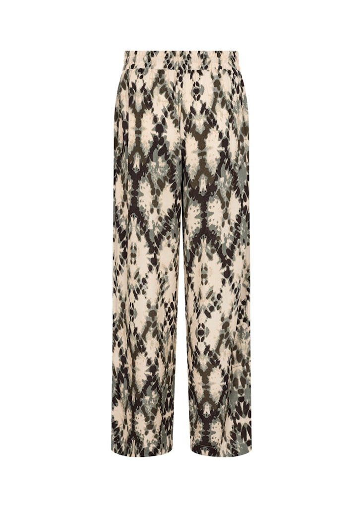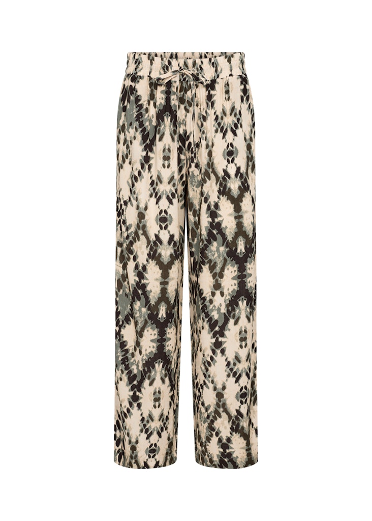 Die SC-PONTIDA 2-B Satinhose hat eine bequeme, fließende Passform aus 100% ECOVERO Viskose. Sie hat einen elastischen Bund mit Bindeband, weite Beine und einen abstrakten Druck. Diese Hose kann sowohl nach oben als auch nach unten getragen werden. Kombiniere sie mit der passenden Bluse oder einem einfachen T-Shirt.