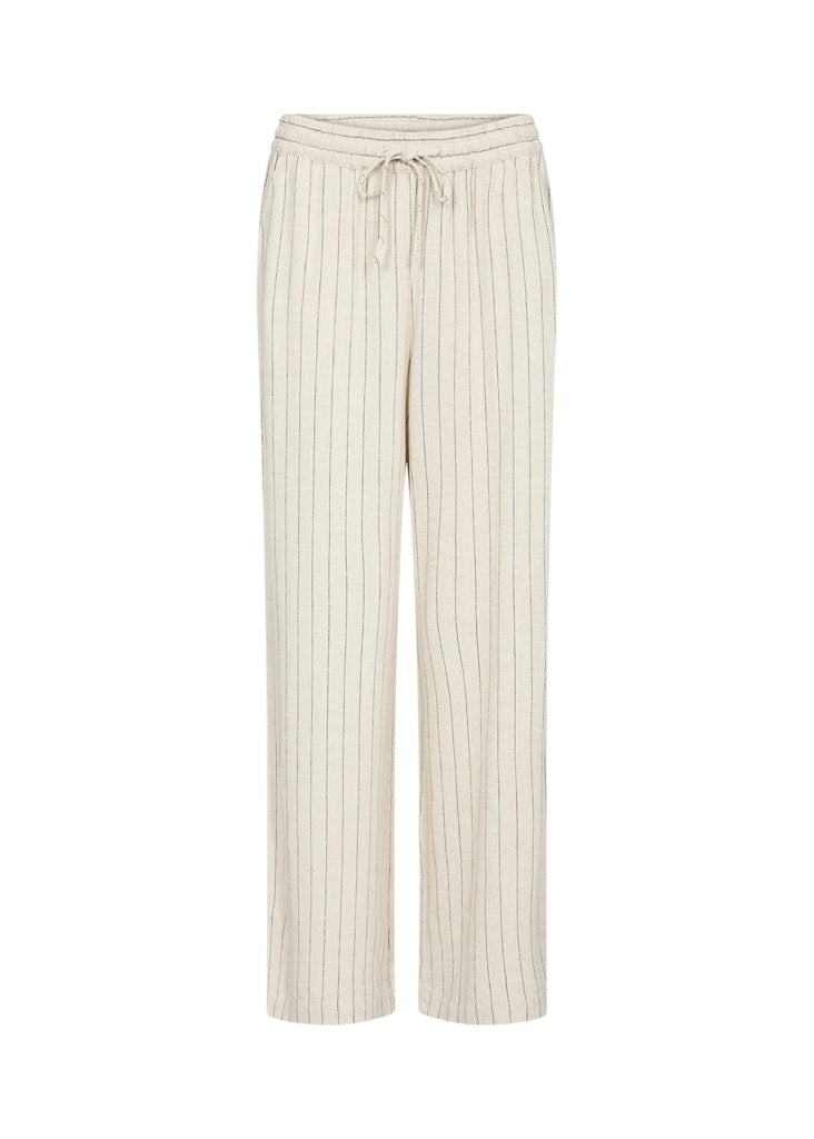 SC-POULA 2-B ist eine Hose aus 70% ECOVERO Viskose, 30% Leinen. Sie hat einen Kordelzug in der Taille für eine verstellbare Passform und vertikale Streifen, die den Look verlängern. Kombiniere sie mit einem taillierten Oberteil oder einem passenden Blazer, um ein komplettes Outfit zu kreieren.