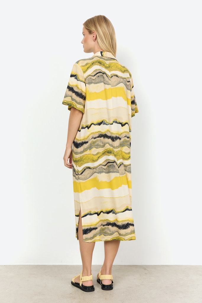 SC-Elsbet 3 ist ein klassisches Kleid aus 100% LENZING™ ECOVERO™ Viskose. Das Kleid hat einen Hemdkragen, einen V-Ausschnitt, kurze Ärmel, eine lockere Passform und einen schmeichelhaften Druck. Kombiniere dieses elegante Kleid mit einem Paar Absätzen und einem Blazer für einen formellen Look.