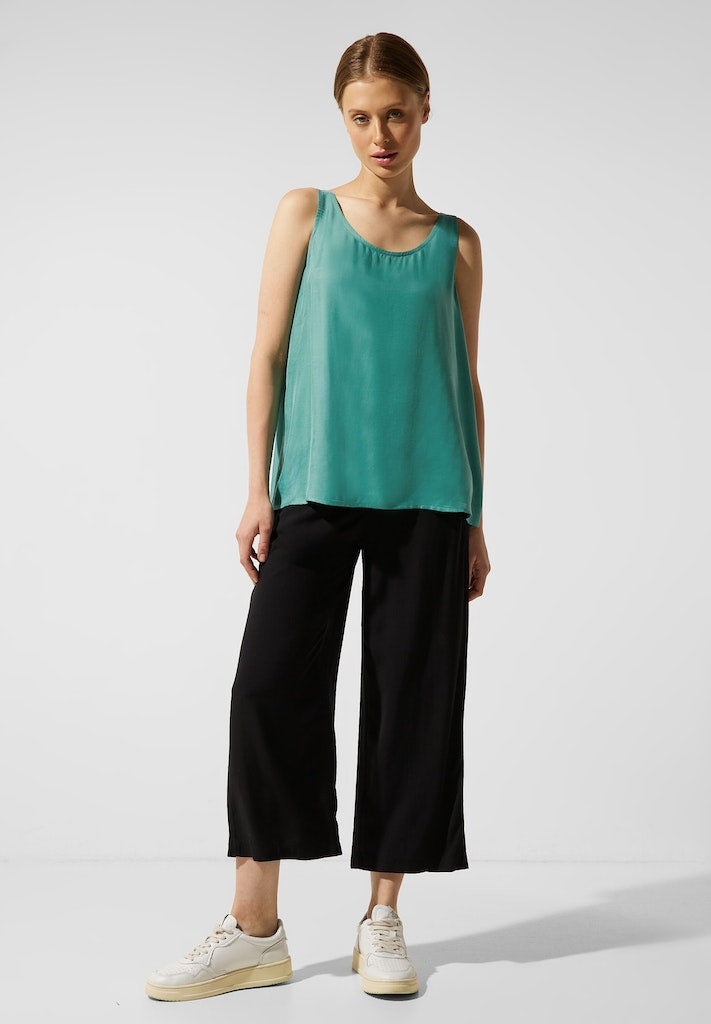 So lovely! Dieses ärmellose Blusentop von Street One ist ein echtes Must-Have für den Sommer! Der tiefe Rundhalsausschnitt verleiht dem Top eine feminine Note und lässt sich wunderbar mit Ketten und anderen Schmuckstücken kombinieren. Der leichte Glanz auf der Vorderseite des Tops verleiht dem Look einen Hauch von Eleganz.