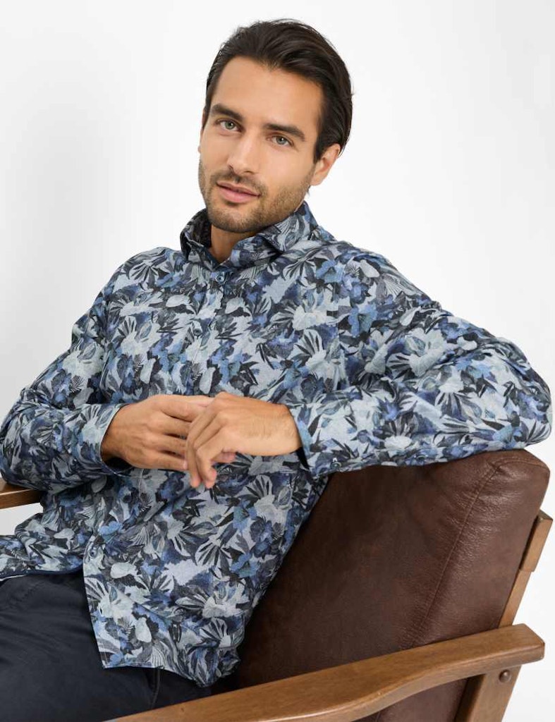 Florale Drucke gefallen auch in der kühlen Jahreszeit – sowie bei diesem Hemd im Style HAROLD, das mit seinem ausdrucksstarken All-Over-Print in gedeckten Nuancen ein modisches Statement setzt. Das Herrenhemd überzeugt mit einer smarten Kombination aus modernem Haifischkragen, schlanker Passform und leicht taillierter Silhouette – ein Look, der zeitgemäß und souverän zugleich wirkt. Optisch spannend und zugleich funktional punktet das Hemd mit einem weichen Flanellgewebe, das aus reiner Baumwolle gefertigt wurde. Dank der gebürsteten Oberfläche liegt das Material besonders angenehm auf der Haut und bietet zuverlässige Wärme – perfekt für stilvolle Herbst-Winter-Outfits mit Komfortanspruch.