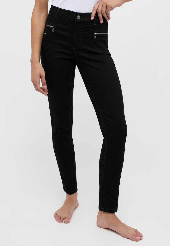 Diese Jeans sieht nicht nur wunderschön aus, sie kommt mit ordentlich Wohlfühlfaktor daher. Dazu begeistert das Design mit drei Zippertaschen auf der Vorderseite und einem tiefschwarzem Look. Schmal geschnitten schmiegt sich die Malu Zip wie eine zweite Haut an das Bein an und besteht dabei mit Formstabilität. Von Casual bis elegant verzaubert dieser Super Stretch Denim jeden Tag!