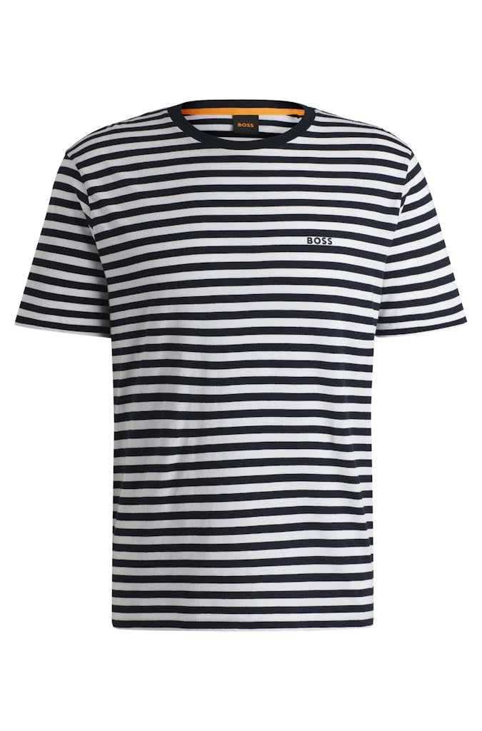 Charakteristisches BOSS T-Shirt aus softem Jersey mit lockerer Passform, Querstreifen und Rundhalsausschnitt.