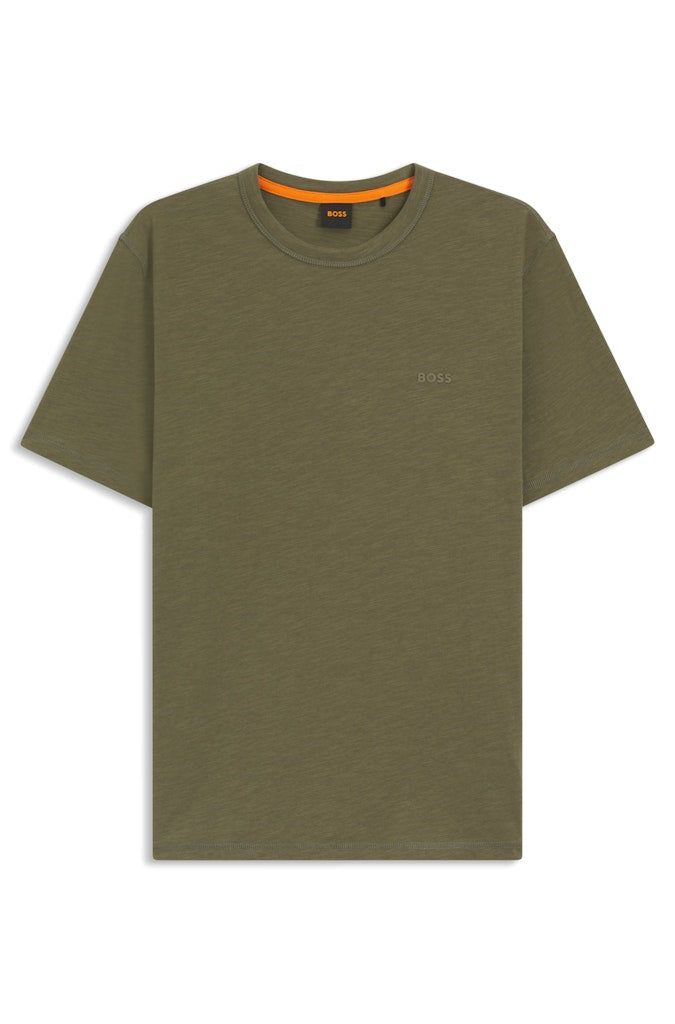 Charakteristisches BOSS T-Shirt. Das gerade geschnittene BOSS Top aus softem, strukturiertem Baumwoll-Jersey hat ein Logo links auf der Brust.