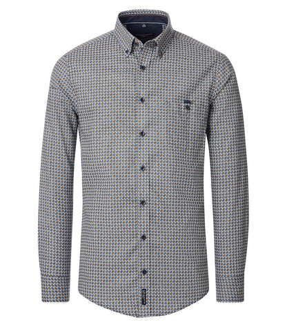 Dieses Freizeithemd in legerer Casual-Fit-Passform überzeugt mit einem hohen Tragekomfort dank Baumwollqualität. Das stylische Modell zeigt sich mit einem modischen Print und erweist sich im Alltag als perfekter Begleiter für den modebewussten Mann. Ob zur Jeans oder zur Chinohose, mit diesem Hemd wird jedes Outfit zu einem echten Hingucker.