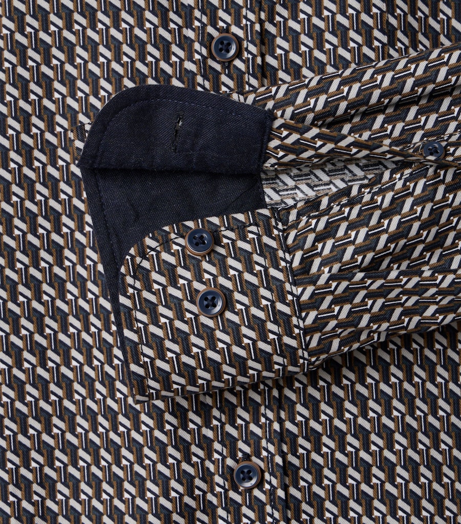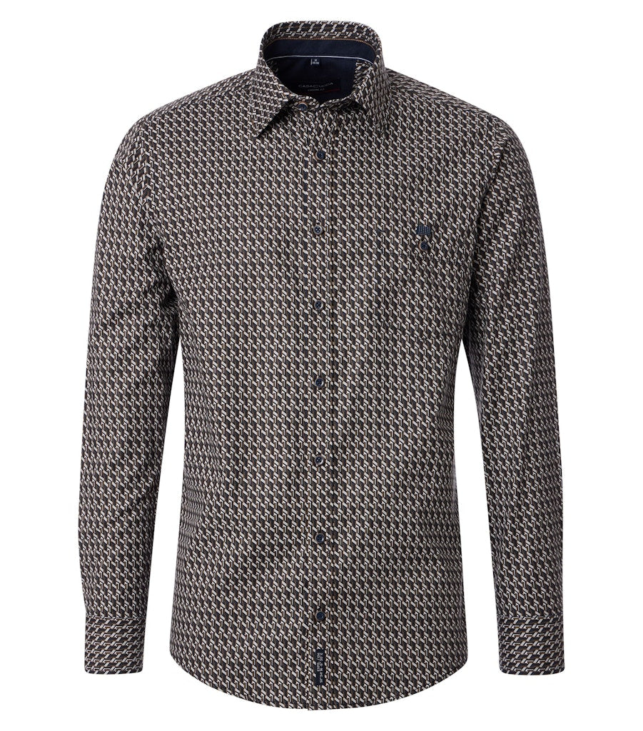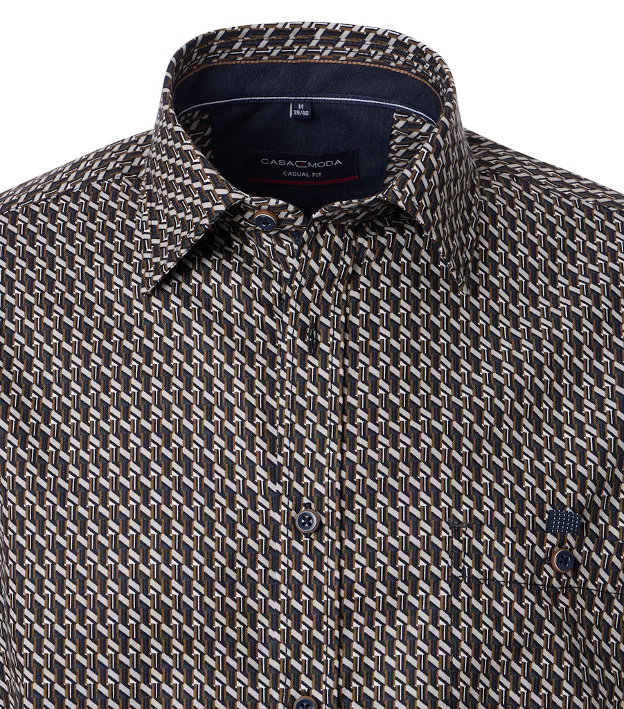 Durch die legere Schnittführung und dem reinen Baumwollgewebe überzeugt dieses modische Freizeithemd mit seinen angenehmen Trageeigenschaften. Das stylische Modell zeigt sich mit einem modischen Print und erweist sich im Alltag als perfekter Begleiter für den modebewussten Mann. Kombinieren Sie es bequem mit einer Jeans oder Chinohose und starten Sie modisch in den Tag.