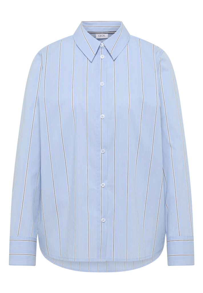 Diese Hemdbluse von CECIL für Damen überzeugt mit klassischem Streifenmuster und gerundetem Saum. Hemdkragen, Knopfleiste und Langarm mit Bündchen unterstreichen den zeitlosen Stil. Der Baumwollmix mit Stretchanteil bietet angenehme Bewegungsfreiheit. Damenbluse mit gerundetem Saum Streifenmuster Hemdkragen und Knopfleiste Langarm mit Bündchen und Knopf Baumwollmix mit Stretchanteil Material: 72% Baumwolle, 25% Polyamid, 3% Elasthan