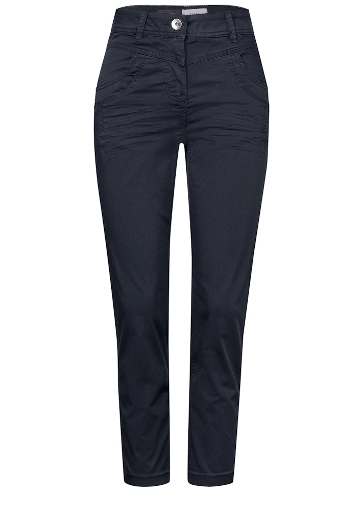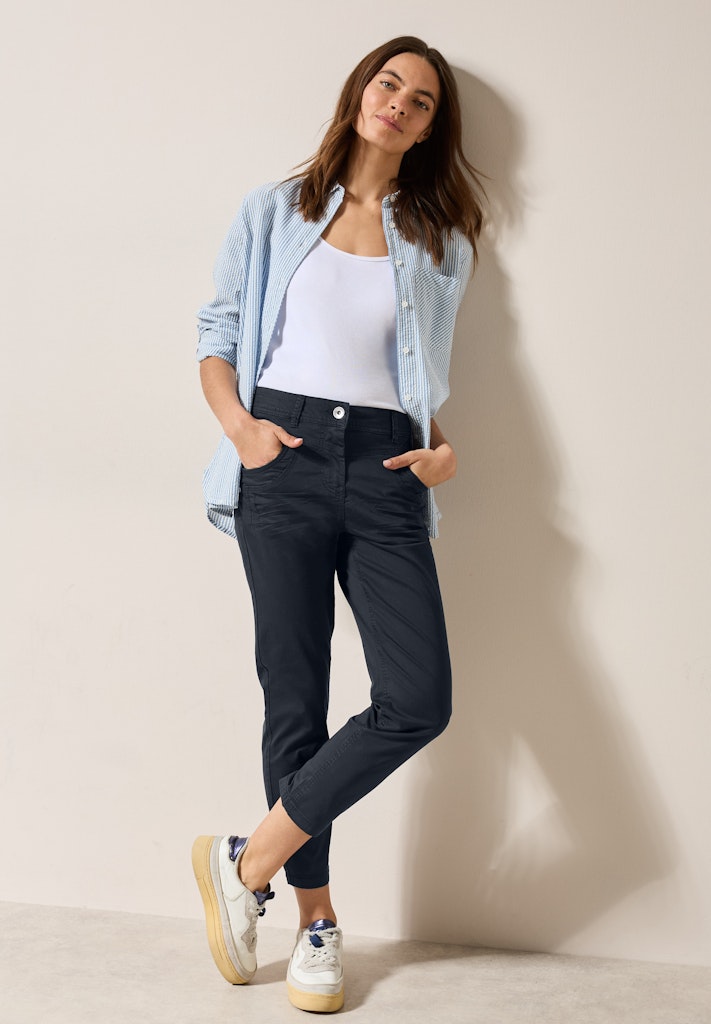 Die Casual Fit Hose im Style Scarlett von CECIL für Damen bietet einen modernen Mid Waist Schnitt und Slim Legs. Die 4-Pocket-Optik und die Washed-Optik verleihen ihr einen lässigen Touch. Der Baumwollmix mit Stretchanteil sorgt für Komfort und Flexibilität. Damenhose Mid Waist und Slim Legs 4-Pocket Washed Optik Baumwollmix mit Stretchanteil Material: 97% Baumwolle, 3% Elasthan