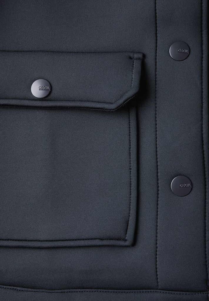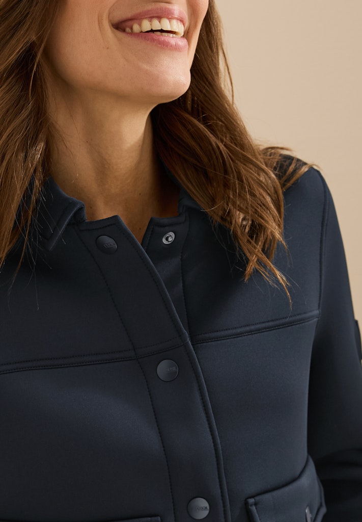 Die kurze Scuba Jacke von CECIL für Damen verleiht deinem Outfit einen modernen Touch. Mit ihrem Hemdkragen, den aufgesetzten Taschen und Bündchen an den Ärmeln verbindet sie Stil und Komfort. Der Materialmix mit Stretchanteil sorgt für optimalen Tragekomfort. Damenjacke Hemdkragen Aufgesetzte Taschen Langarm mit Bündchen Materialmix mit Stretchanteil Material: Obermaterial: 93% Polyester, 7% Elasthan; Futter: 100% Polyester
