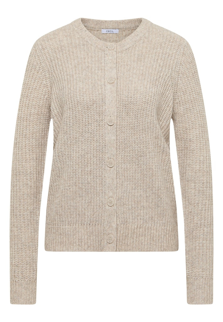 Der Melange Cardigan von CECIL für Damen überzeugt mit seinem angenehmen Baumwollmix und einem klassischen Look. Rundhalsausschnitt, Knopfleiste und Langarm machen ihn zum vielseitigen Kombiteil für deinen Alltag. Perfekt für gemütliche und unkomplizierte Outfits. Strickjacke Rundhalsausschnitt Langarm Knopfleiste Angenehmer Baumwollmix Material: 58% Baumwolle, 20% Polyacryl, 20% Polyester, 2% Nylon