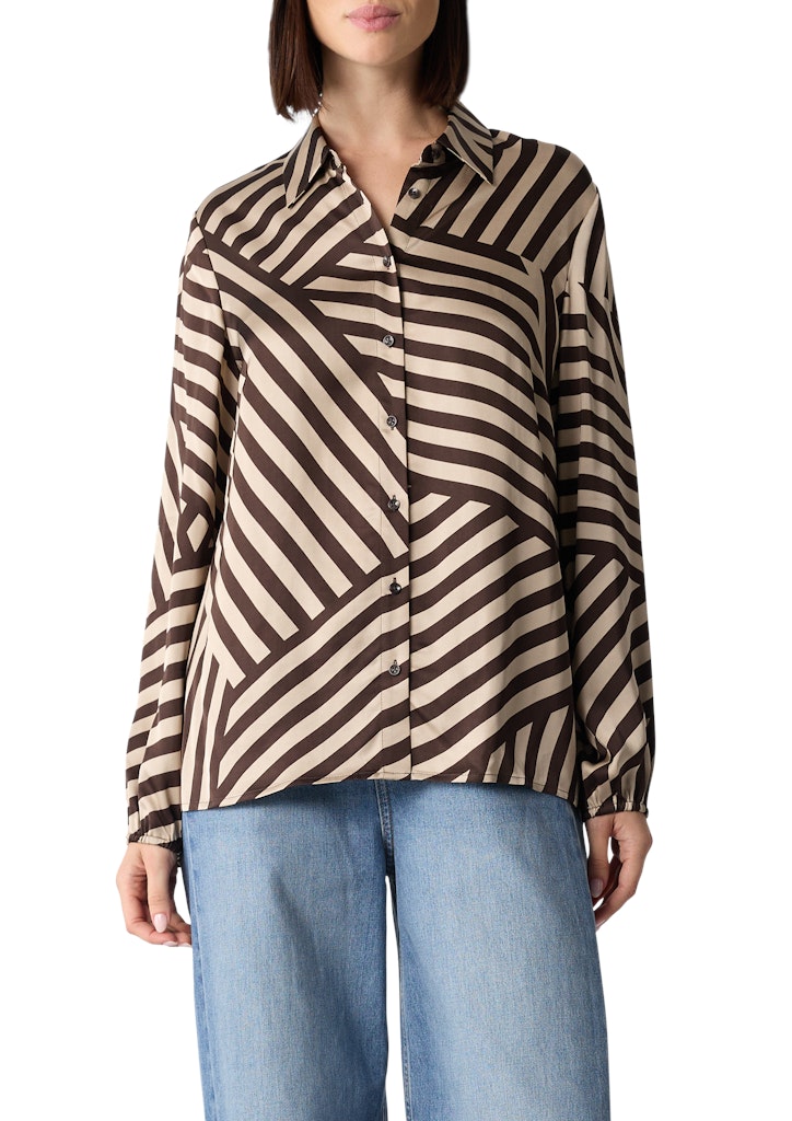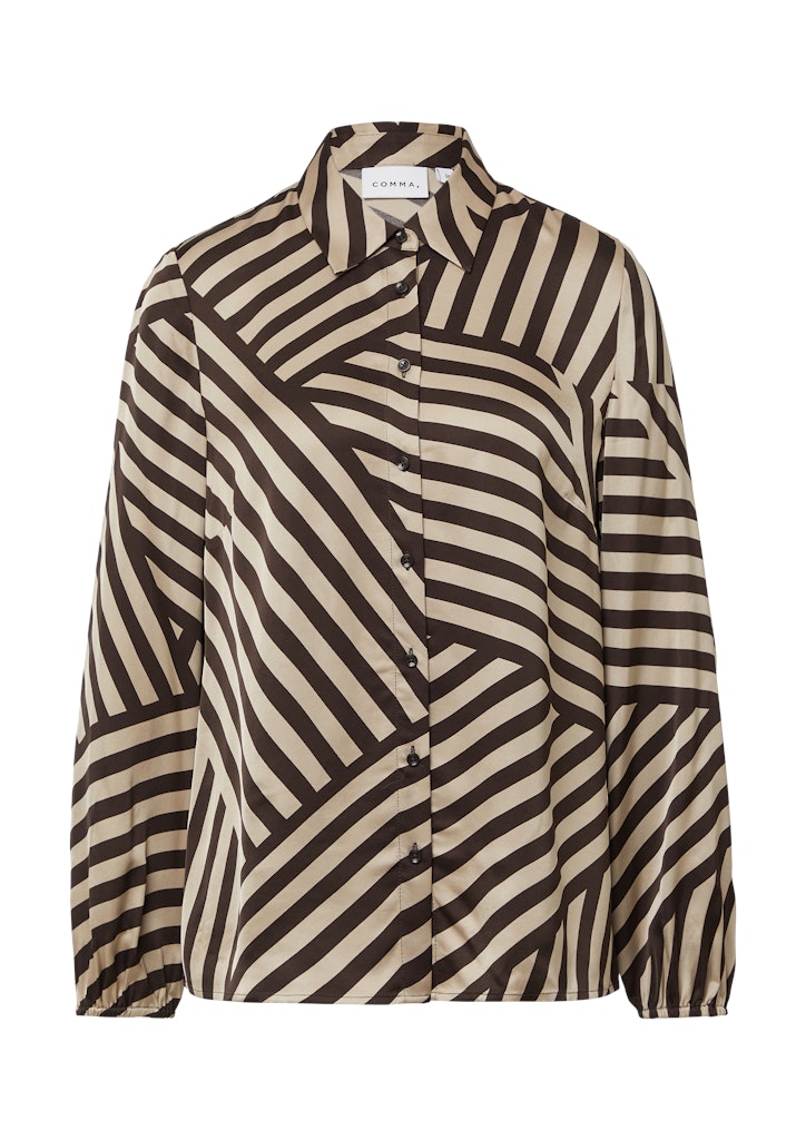Feminine Eleganz trifft auf zeitgemäßen Komfort: Diese satinierte Hemdbluse mit ausdrucksstarkem All-over-Print vereint edle Optik mit angenehmer Trageeigenschaft. Die reine Viskose schmiegt sich geschmeidig an Ihre Silhouette, während der klassische Hemdkragen und die Knopfleiste für Business-Tauglichkeit sorgen. Praktische Gummibündchen an den langen Ärmeln runden das Design perfekt ab. Ein vielseitiges Piece für stilbewusste Frauen.