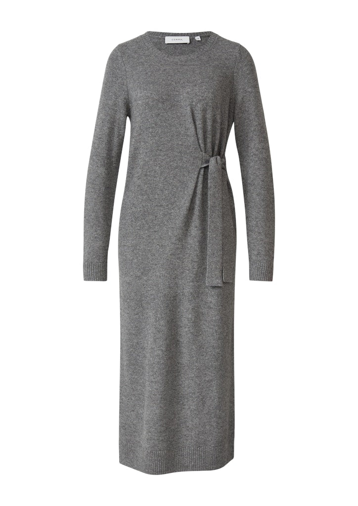 Strickkleid aus Wollmix mit fixem Taillengürtel