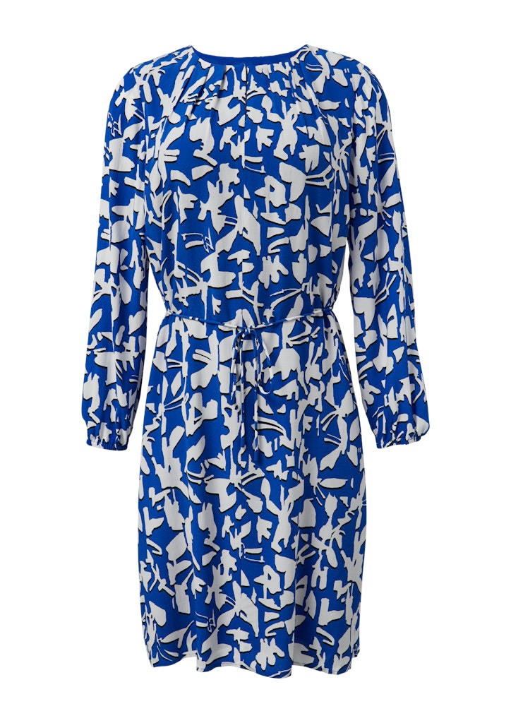 Verleihen Sie Ihrem Sommer-Look eine feminine Note mit dem gemusterten Midi-Kleid. Das fließende Viskosematerial umspielt gekonnt Ihre Silhouette, während der Faltenausschnitt und Bindegürtel für einen eleganten Twist sorgen. Dank des lässigen Loose Fits und der Knopfverschlüsse lässt sich das Kleid vielseitig stylen – ob zu Sandalen für den Tag oder Pumps für den Abend.
