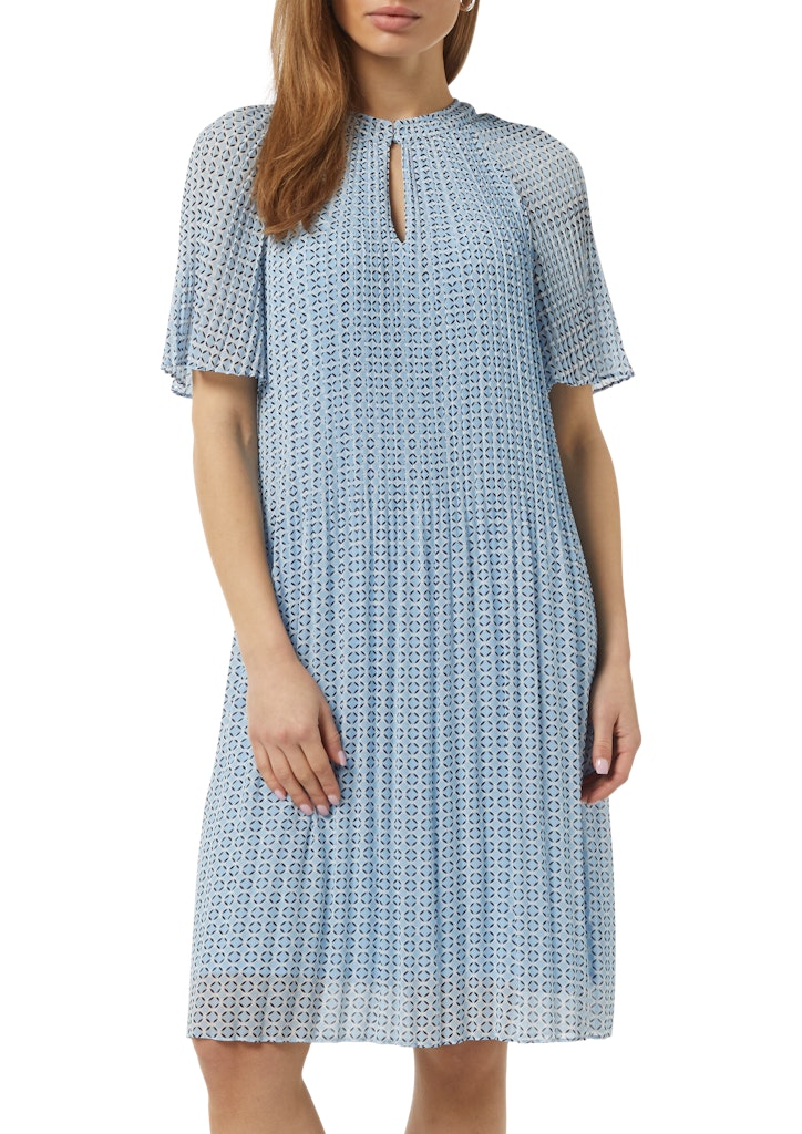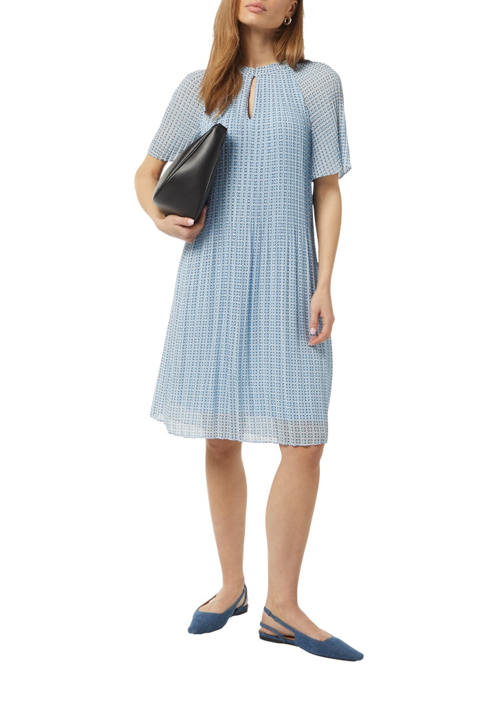 Fließende Leichtigkeit trifft auf sommerlichen Charme: Das Plissee-Kleid aus zartem Chiffon umspielt Ihre Silhouette mit femininer A-Linie. Der All-over-Print verleiht dem Mini-Dress eine verspielte Note, während die Raglanärmel für optimale Bewegungsfreiheit sorgen. Mit dem Crew Neck und dem raffinierten Verschluss aus Schlaufe und Knopf kreieren Sie mühelos einen eleganten Look für verschiedenste Anlässe.