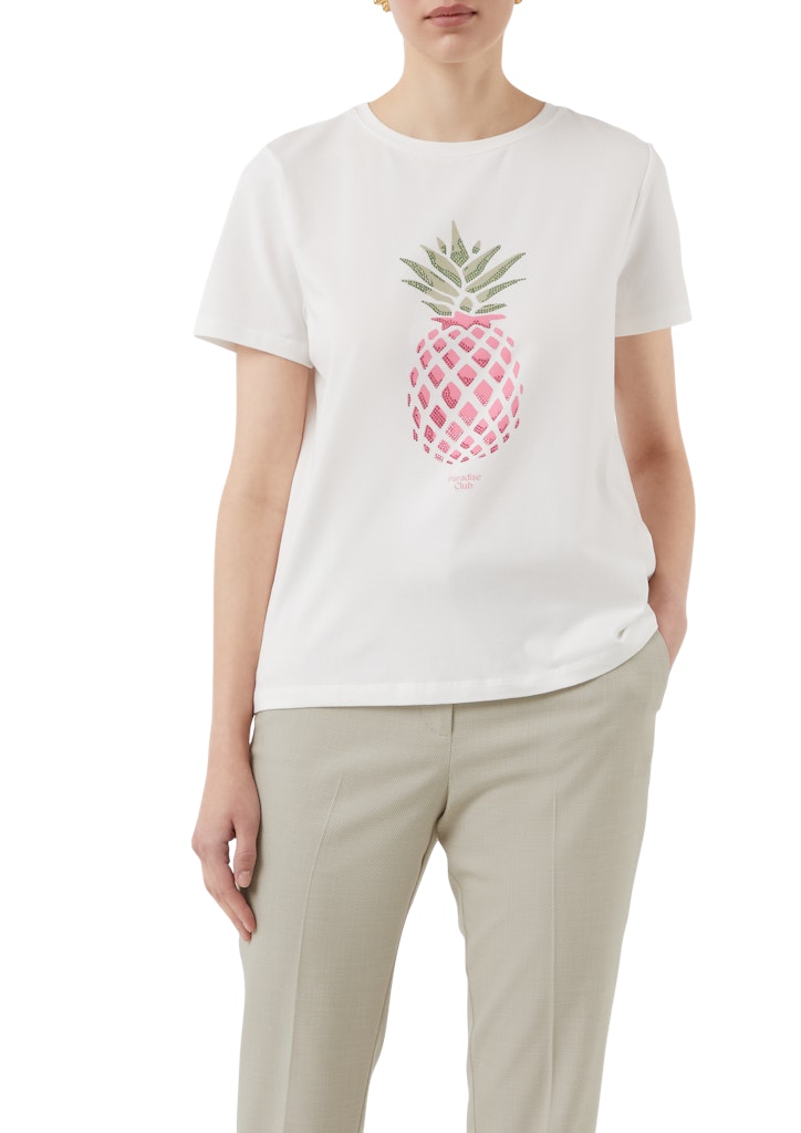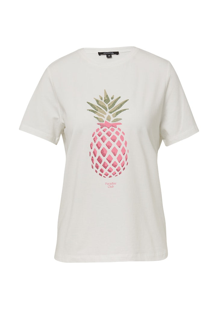 Entdecken Sie unser vielseitiges Jersey-T-Shirt mit Pailletten und Artwork! Der Regular Fit und überschnittene Schultern sorgen für einen lässigen Look, während der Rundhalsausschnitt klassische Eleganz verleiht. Der hochwertige Baumwollmix garantiert angenehmen Tragekomfort. Perfekt für Casual-Anlässe und Urlaubsoutfits - stylen Sie es mit Jeans für einen entspannten Alltags-Look oder mit einer Shorts für einen sommerlichen Vibe.