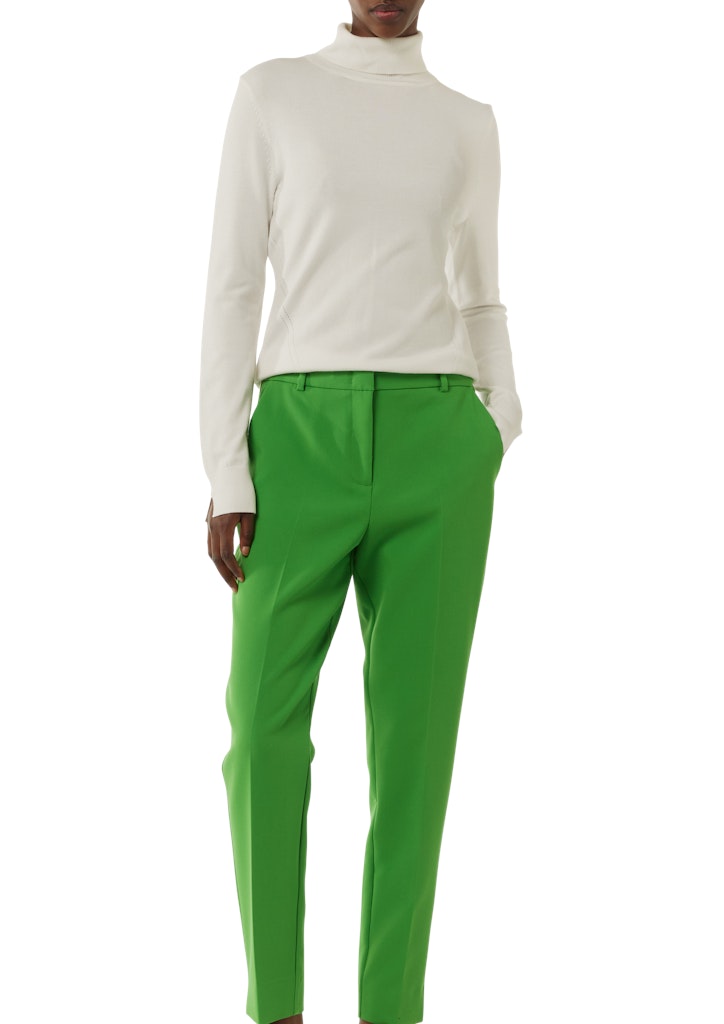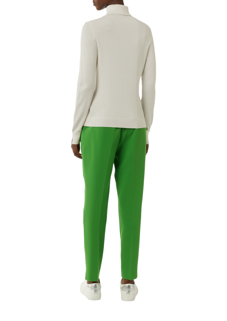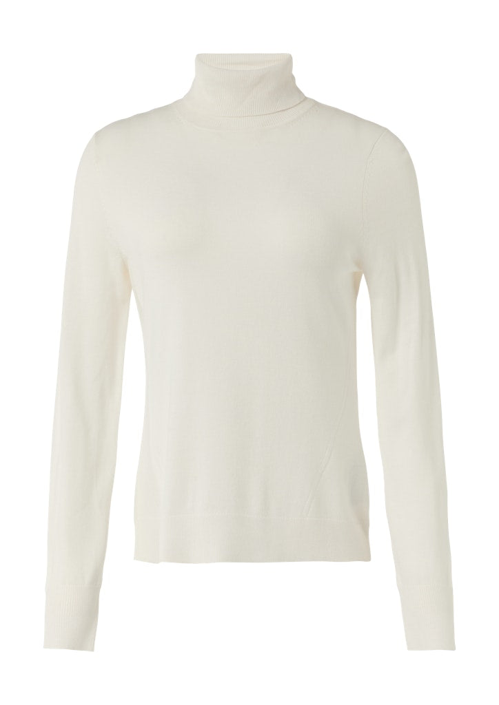 Raffinierte Eleganz trifft auf Komfort: Der Feinstrickpullover mit Rollkragen und Ärmelschlitz vereint Stil und Funktionalität. Das weiche Material schmiegt sich angenehm an Ihre Haut und kreiert eine feminine Silhouette. Perfekt für das Layering an kühleren Tagen oder als Statement-Piece. Kombinieren Sie ihn mit einer Hose für einen Business-Look oder mit einem Rock für einen eleganten Abend.