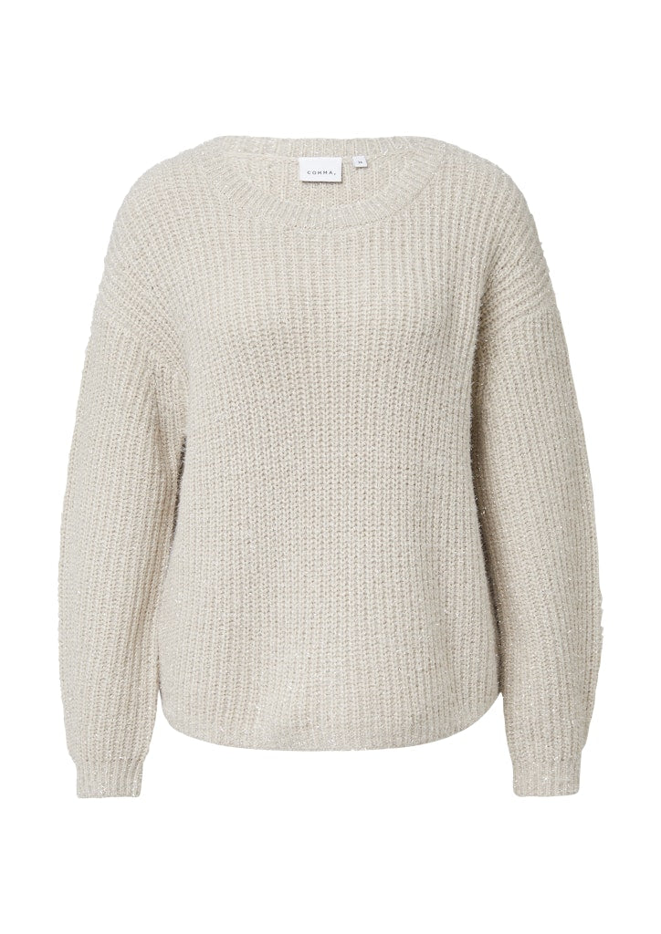 Glamourös glitzernder Strickpullover im angesagten Cropped-Style. Der weiche Baumwollmix mit edlem Glitzergarn verleiht Ihrem Look einen subtilen Schimmer. Die entspannte Silhouette mit Ballonärmeln und überschnittenen Schultern kreiert eine moderne, feminine Linie. Der elastische Rippstrick an Ausschnitt, Bündchen und Saum garantiert perfekten Sitz. Ein vielseitiges Statement-Piece für stilbewusste Frauen.