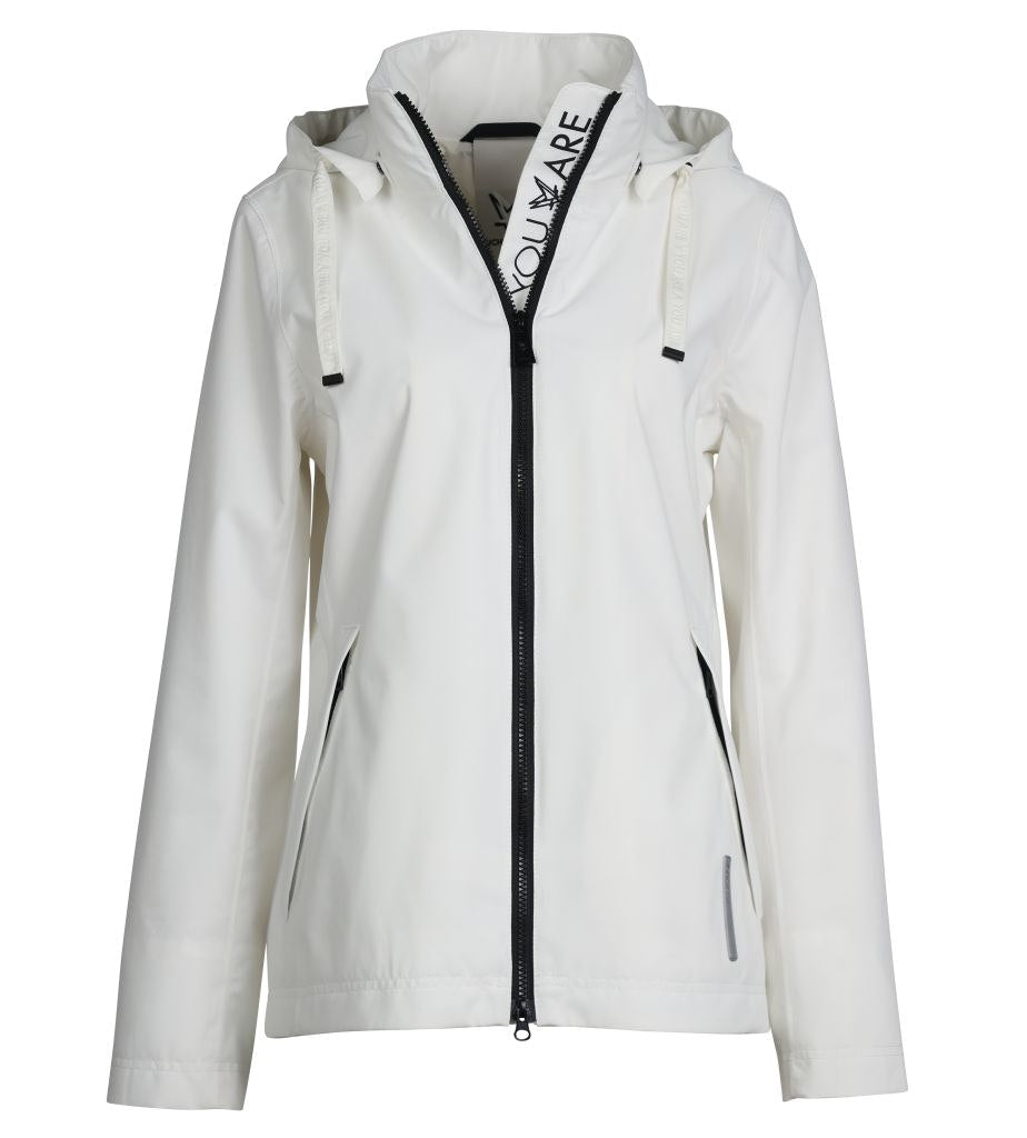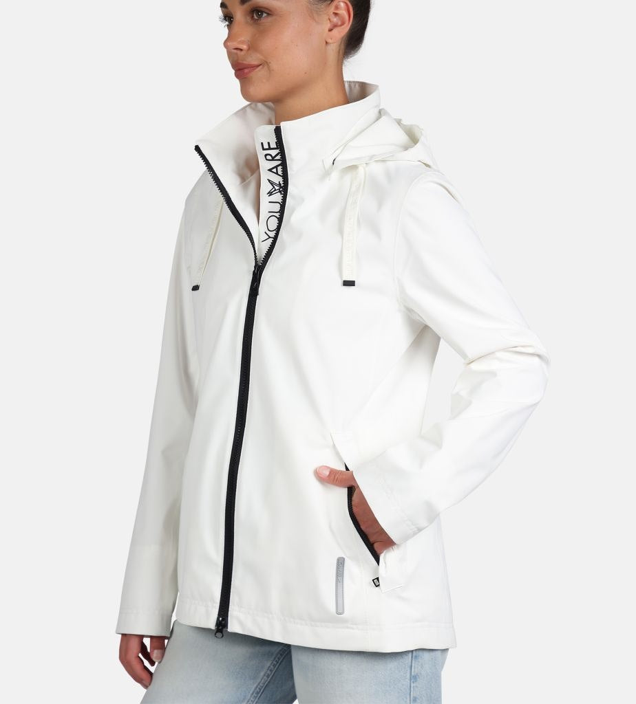 Rainwear Jacke mit Stehkragen, Reißverschluss, Reißverschlusstaschen, abnehmbare Kapuze, We care for nature