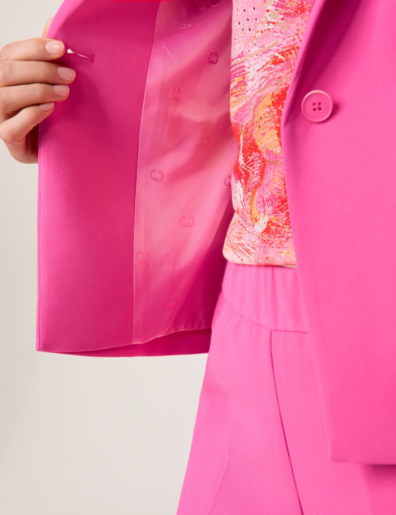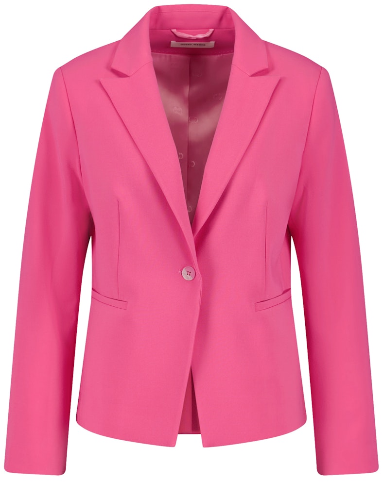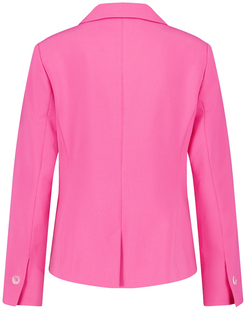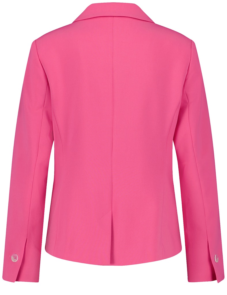 Teilungsnaht und Bewegungsschlitz am Rückenteil. Formgebende Abnäher. Dieser taillierte Blazer mit Stretchkomfort passt sich perfekt Ihrer Silhouette an und sorgt für ein angenehmes Tragegefühl. Stilvolle Details wie geknöpfte Armschlitze und feine Paspeltaschen machen ihn zum idealen Begleiter für Business und besondere Anlässe. Vielseitig kombinierbar, auch mit der materialgleichen Hose, setzt er in jedem Outfit einen modernen, edlen Akzent.