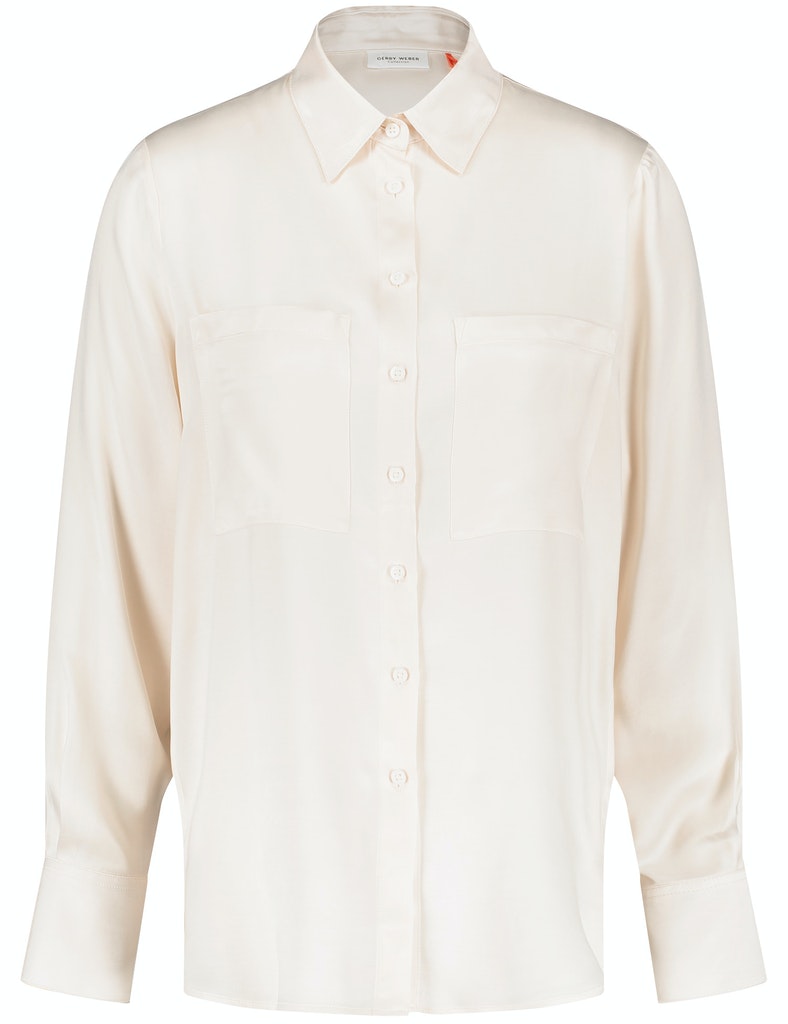 Brust- und Längsabnäher. Abgerundeter Saum. Die Hemdkragenbluse aus natürlicher Baumwolle ist ein beliebter Stylingpartner in zahlreichen Looks!
