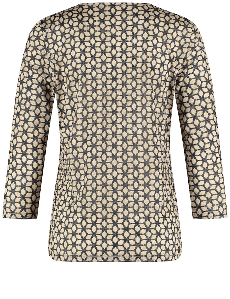 Gerry Weber / Da.Shirt, Polo / T-SHIRT 3/4 ARM / 01038 BLACK/TAUPE STAR AOP / 42