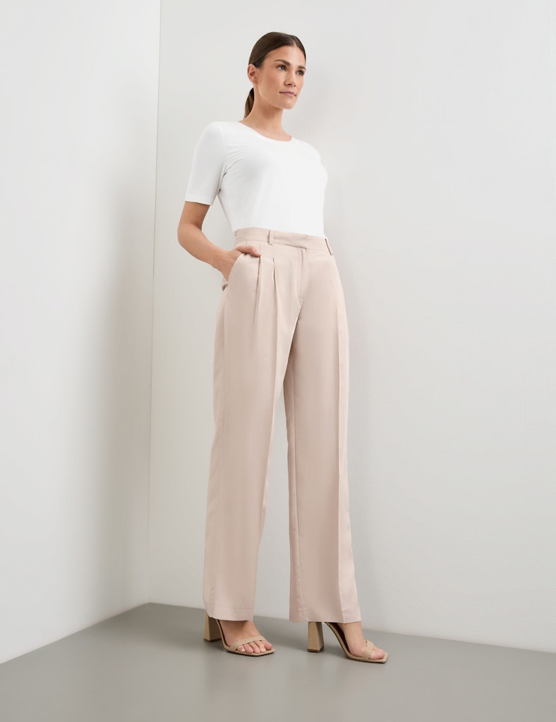 Bund mit Gürtelschlaufen. Begeistern Sie sich und andere mit einem stilvollen Outfit rund um unsere Hose MIR꞉JA WIDE LEG: Der fließende und atmungsaktive Material-Mix trägt sich angenehm auf der Haut und strahlt Klasse aus. Bundfalten und Bügelfalten geben dem Piece eine charmante Note. Kombinieren Sie Heels und eine klassische Bluse für den Office-Look oder Sneaker und Strickpullover in der Freizeit.