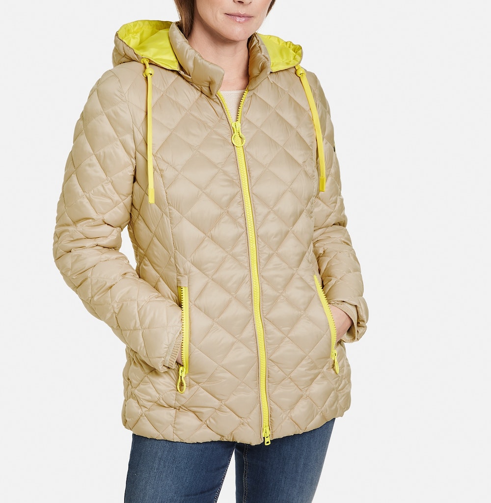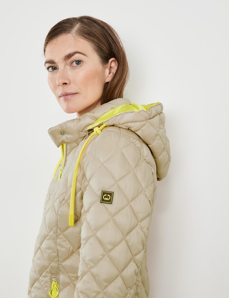 Tunnelband in der Kapuze. Formgebende Abnäher. So trendig kann Outdoor-Mode sein: Dank dieser leicht taillierten Steppjacke mit Stehkragen sind Sie bei frischem Wind ideal geschützt und trotzdem stilsicher angezogen. Durch die nachhaltige Wattierung und mit der Kapuze ist sie selbst bei kühlen Temperaturen die richtige Wahl. Das wärmende, fein schimmernde Material sorgt für die ideale Balance zwischen Style und Eleganz.