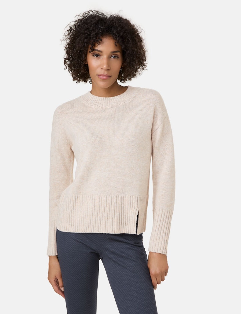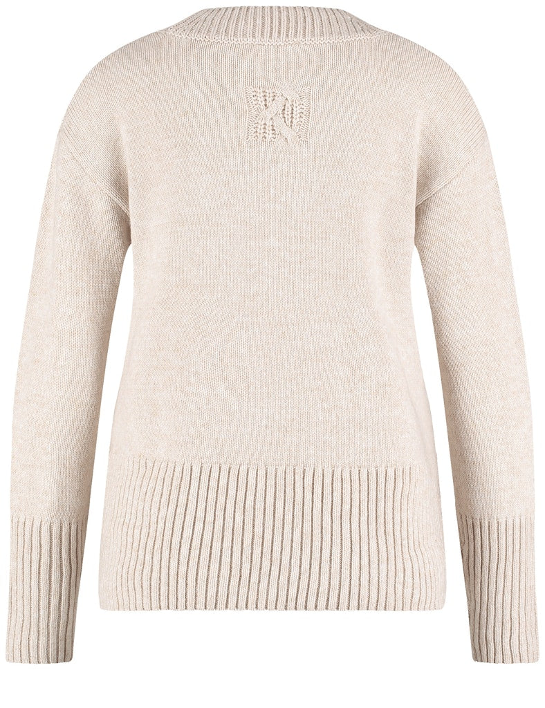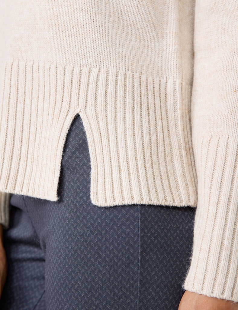 Bund mit Seitenschlitz. Dekoratives Strickdetail mit Zopfmuster im Rücken. Verleihen Sie Ihrer Herbstgarderobe einen neuen Look: Dieser Pullover ist nicht nur ein praktisches Kleidungsstück, sondern auch ein stilvolles Statement, das Sie in der kalten Jahreszeit warm hält. Die breiten Rippenbündchen an den Ärmeln und am Saum verleihen dem Pullover eine lässige Note und sorgen gleichzeitig für einen perfekten Sitz.